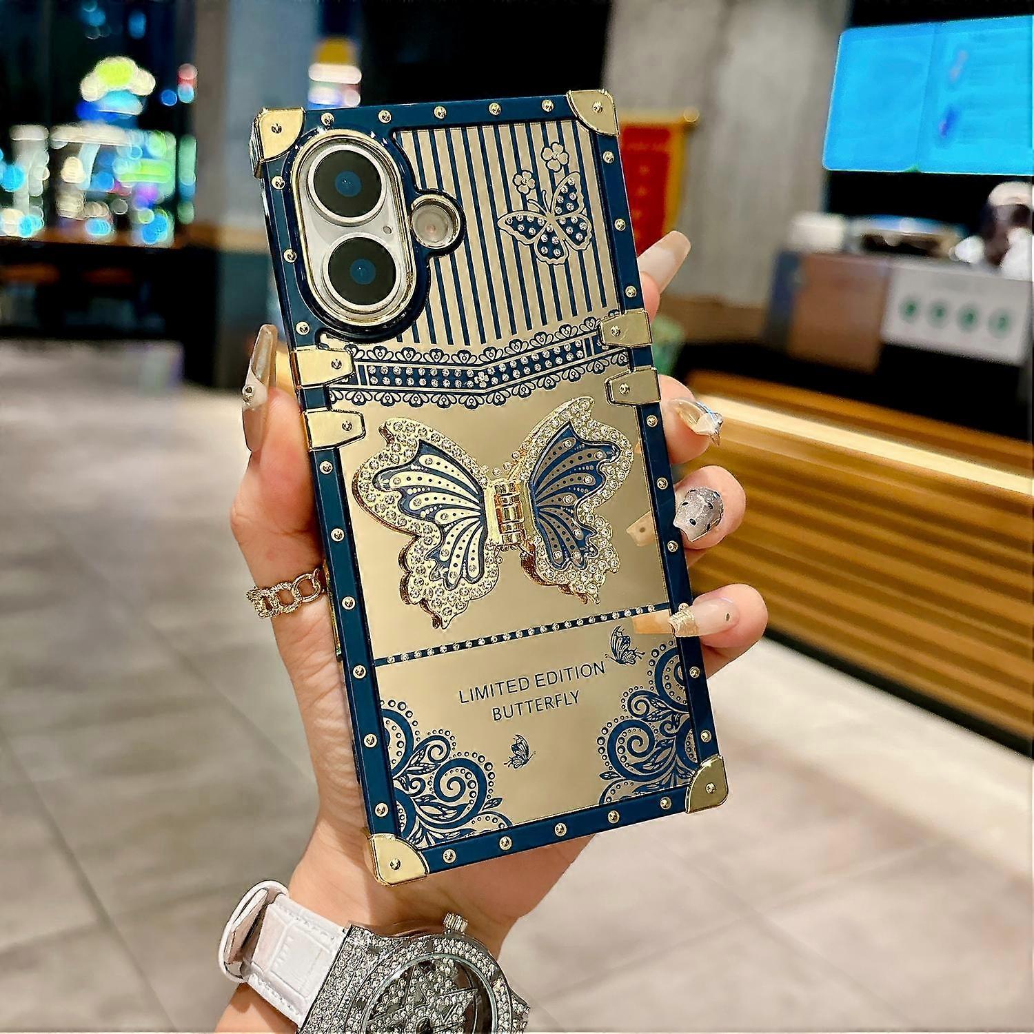 For iPhone 17 Case Electroplated TPU + PC Phone Cover with Butterfly Kickstand