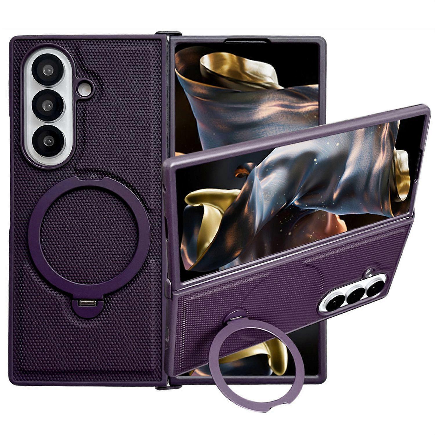 For Samsung Galaxy Z Fold7 5G Magnetic Case Rotating Kickstand Rhombus Leather + PC Foldable Phone C