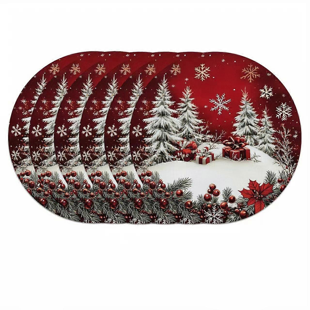 6pcs winter placemat -38cm round, Christmas snowflake pattern, anti slip and heat-resistant, for Christmas decorative placemats