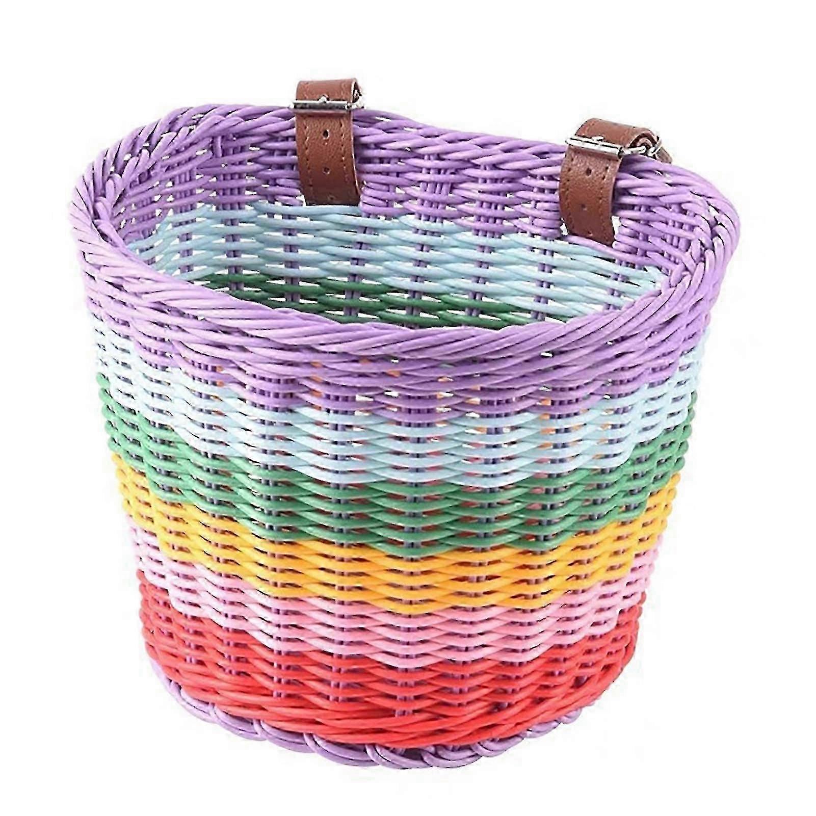 x Kid Front Handlebar Bike Basket Premium Hand-Woven Rainbow Color Bike Basket Suitable for Most Type of Bikes