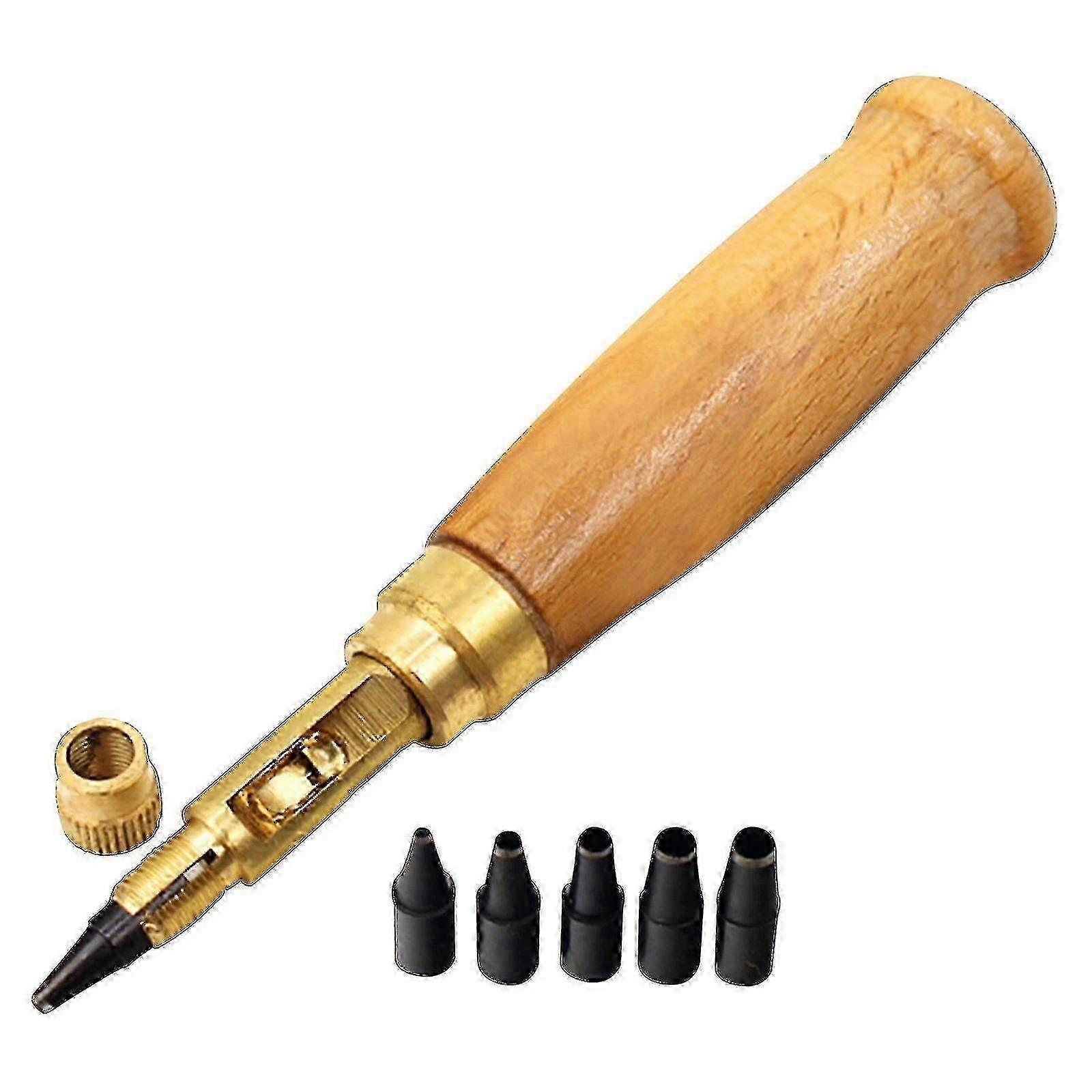 Multi-Head Belt Screw Hole Puncher DIY Leather Hole Punch Automatic Belt Punch Easy to Operation Step 1: Keep the punch 90, aiming at the drilling position Step 2: Hold the handle and press firmly Rotate the punch to cut the leather Step 3:Take up the punch, the leather scrap will be spitted out automatically Suggested using with a cutting mat for long lasting blades Automatic Hole Puch Leathercraft Tools Ergonomic Design Handle Designed to comfortably fit in the palm of your hand while working. It is lightweight and portable. If the leather is thicker than 3mm, you might need to repeat the process one more time. Portable Design Compared to the general punch, its noise and puncher size is smaller. It can easy secure storage your tool box. Multiple Usage This item is a hole punch, it is great for sewing leather craft, paper, cutting rubber, plastic, etc. Specification Material: Wood and Alloy Color: yellow Size: 18.8x2.8 cm Delivery Quantity: 1 Piece Note: Due to the light and screen setting difference, the item's color may be slightly different from the pictures. Please allow slight dimension difference due to different manual measurement.