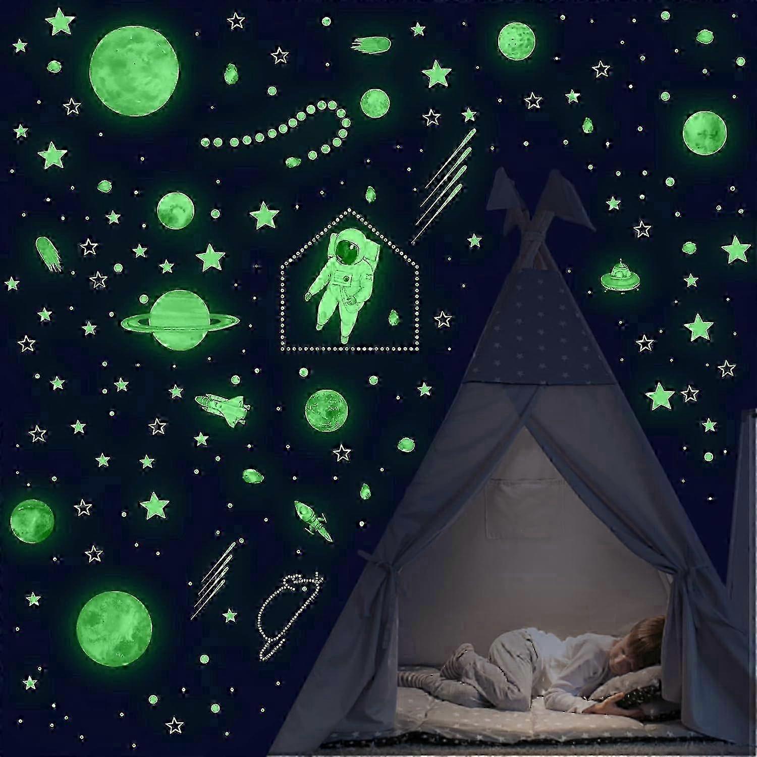 x Galactic Nighttime Adventure, Space Theme Elements Including Astronaut Rocket And Luminous Stars, For Kids Room Decor With Extra Bright Long-las