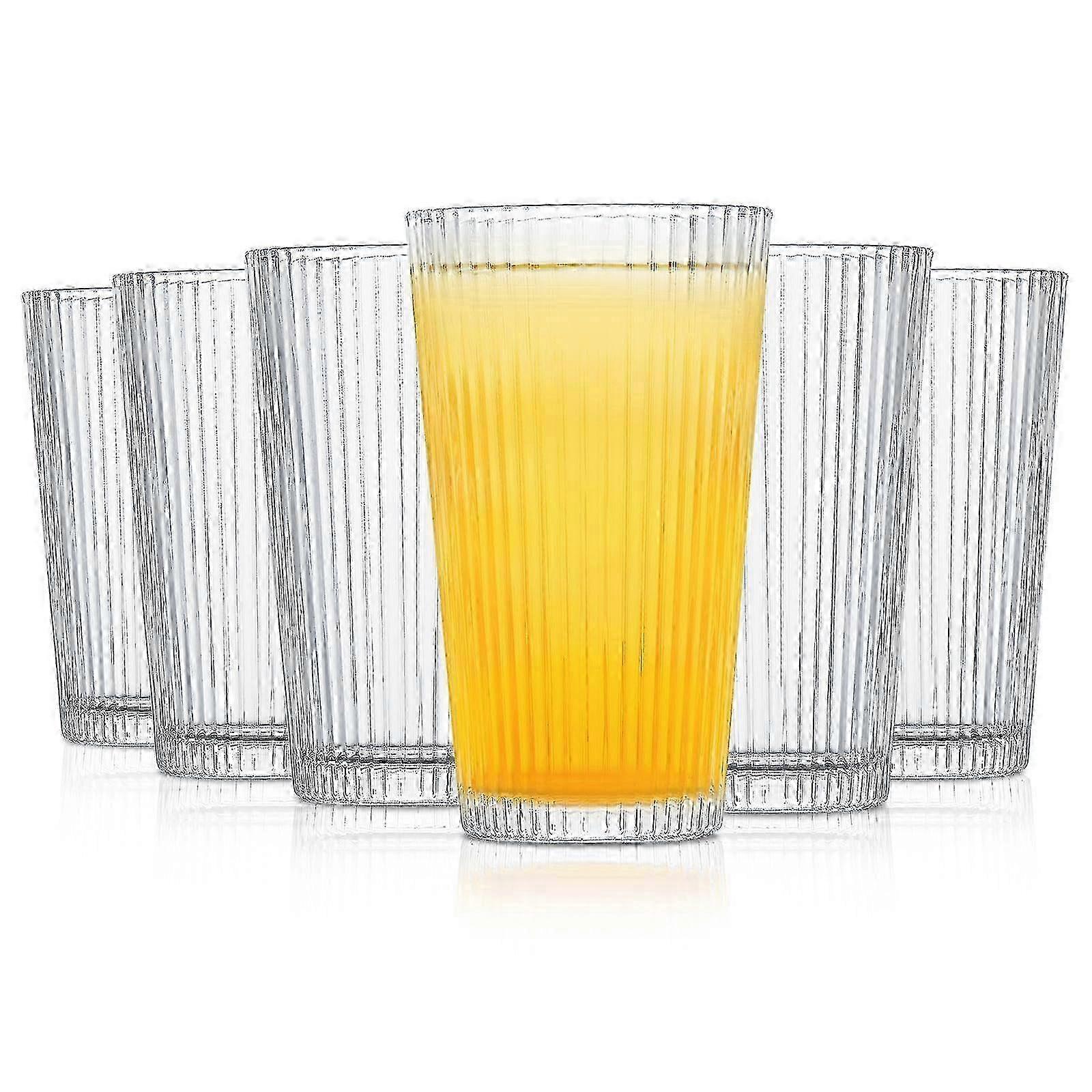 x 6 Set Ribbed Tumbler for Cocktails and Smoothies 16 oz