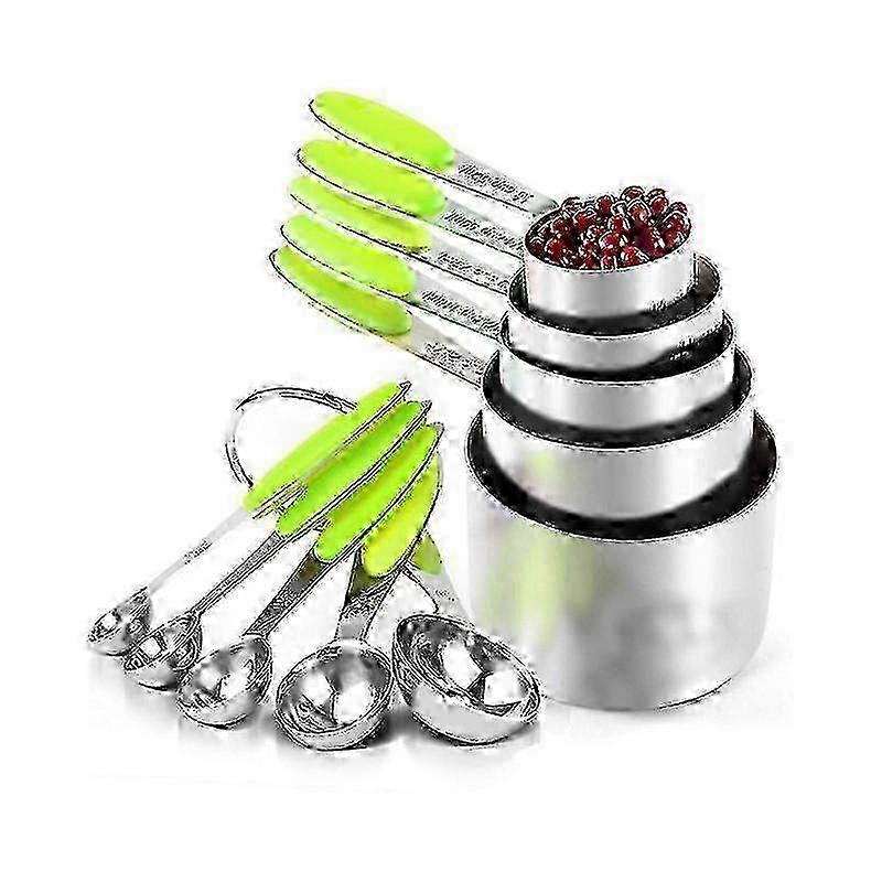 x Spoons and Measuring Cups: 10-Piece Kitchen Measuring Stainless Steel Measuring Cups and Spoon Set for Pastry and Baking, Thickened Handle