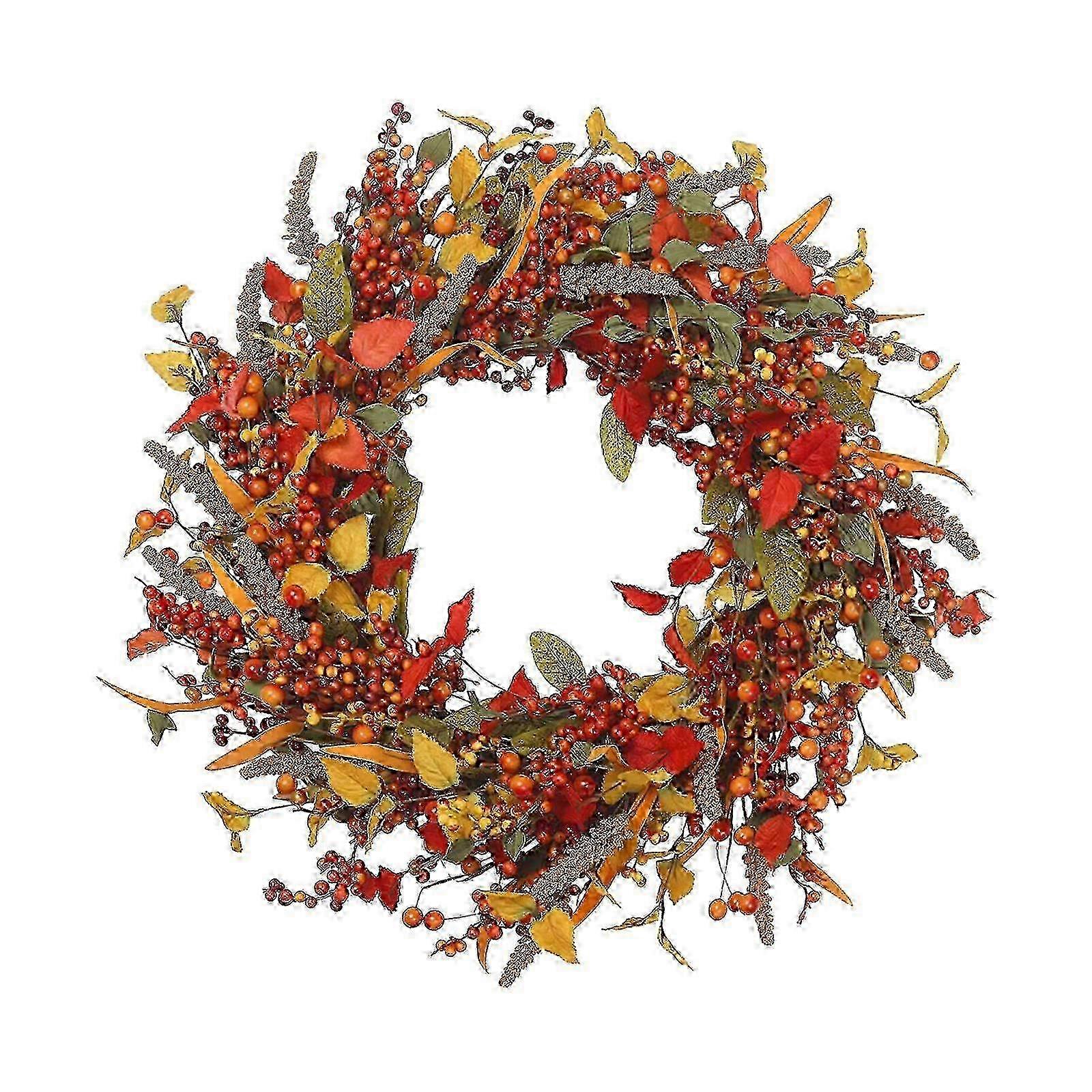 x Artificial Autumn Fall Wreath with Berries for Front Door, Thanksgiving Home Decor Celebration