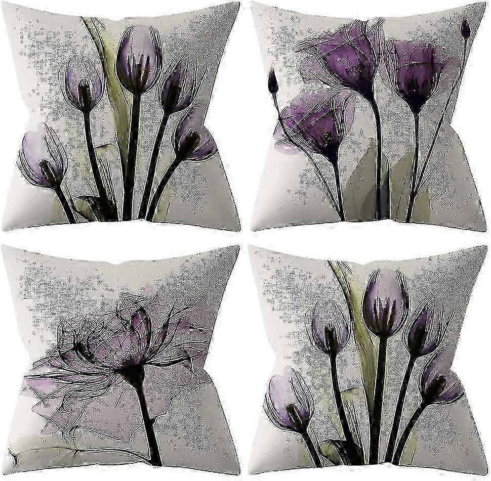 x Decorative Throw Pillow Covers 18x18 Inches Set Of 4 Purple Flower Cushion Covers 45cm X 4