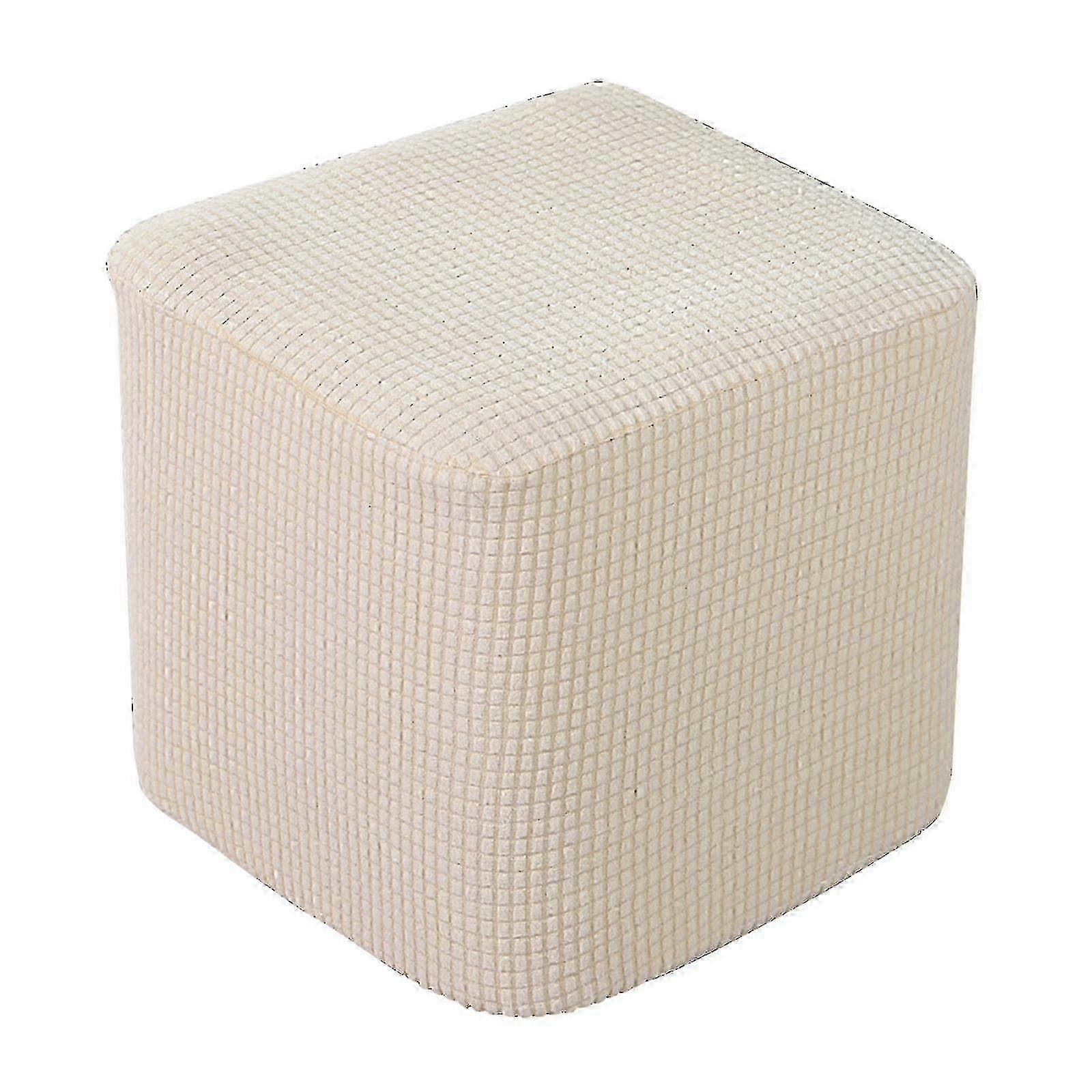 x Elastic Square Ottoman Slipcover with Storage Bottom, Textured Check Jacquard Stretch Footstool Cover for Home Decor