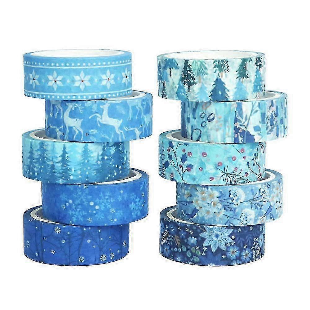 x 10 Rolls Blue Christmas Wasabi Tape - for Bullet Journaling, DIY Crafts & Gift Wrapping.