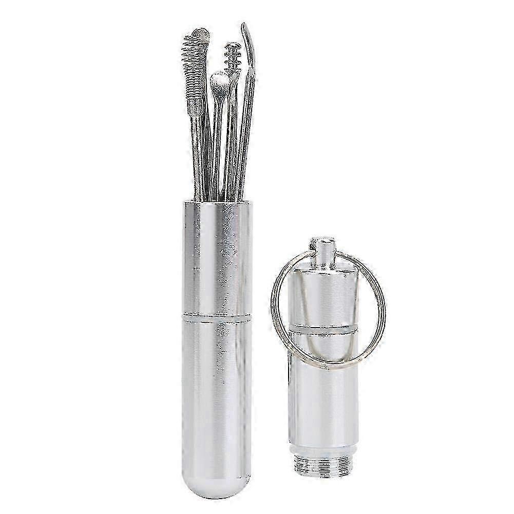 x Ear Pick, 6pcs Stainless Steel Ear Wax Removal Kit Ear Spoon Ear Curette With Storage Tube Keychain For Ear Care Ear
