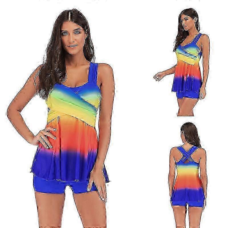 x Plus Size Womens Tankini Set Padded Gradient Swimwear Swimsuit Dark Blue