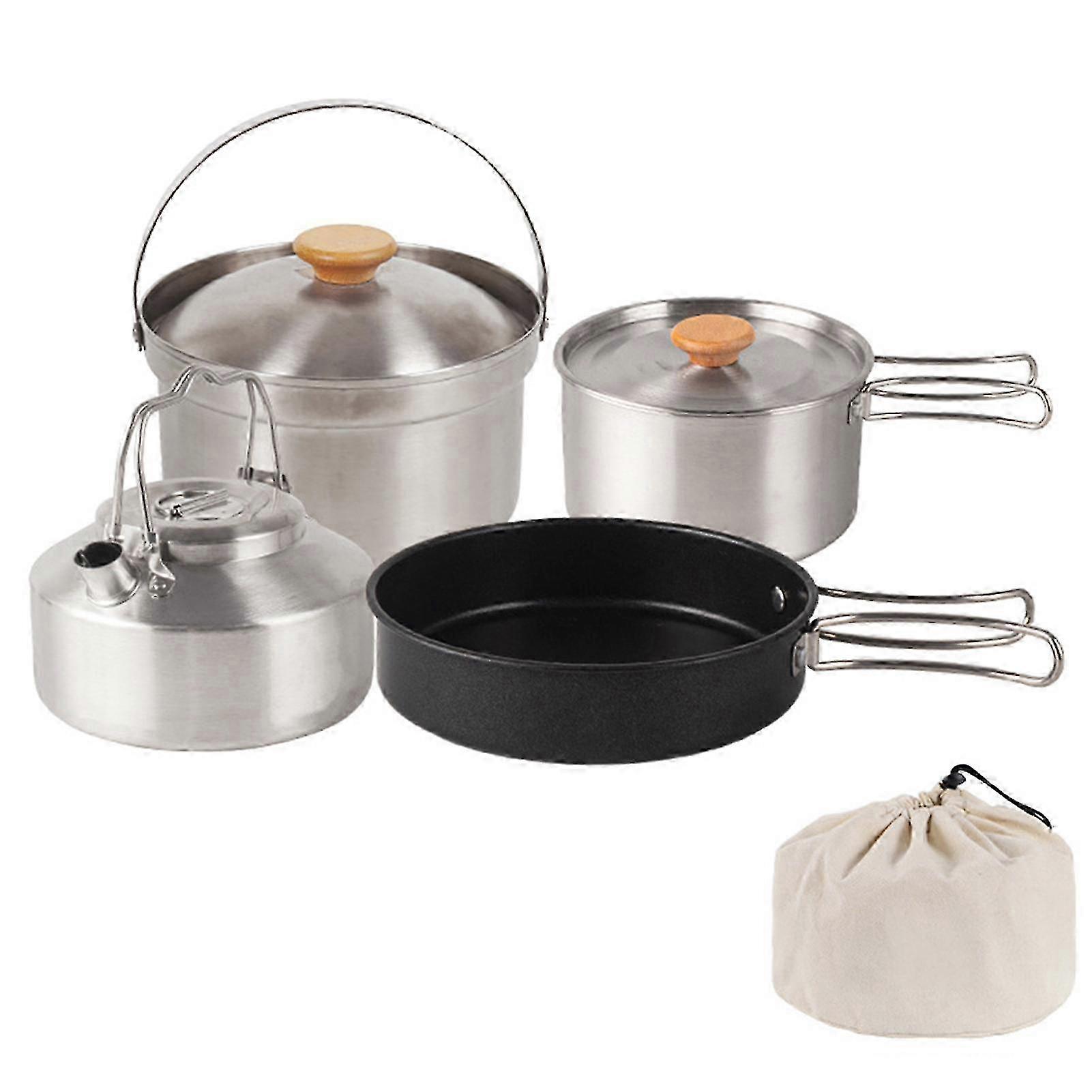 x Stainless Steel Pot Pan Kettle Set Multi-Purpose Cooking Accessories Camping Accessories