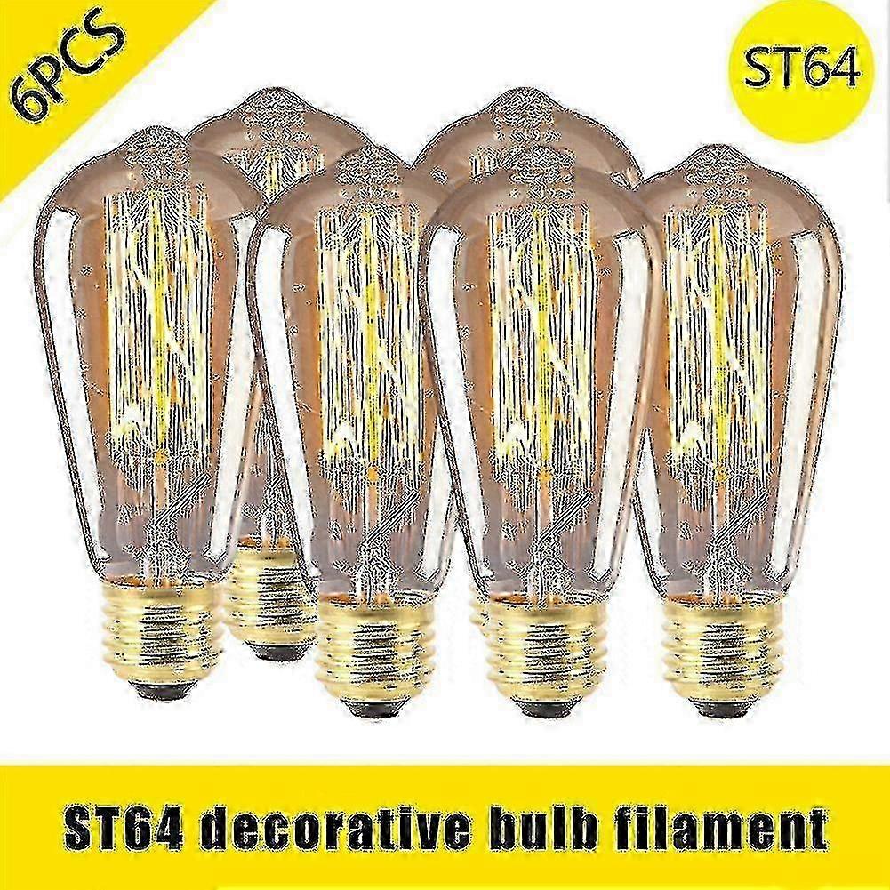 x 6pcs Vintage Retro ST64 E27 Edison Bulbs 40W Filament Light Bulb Warm White