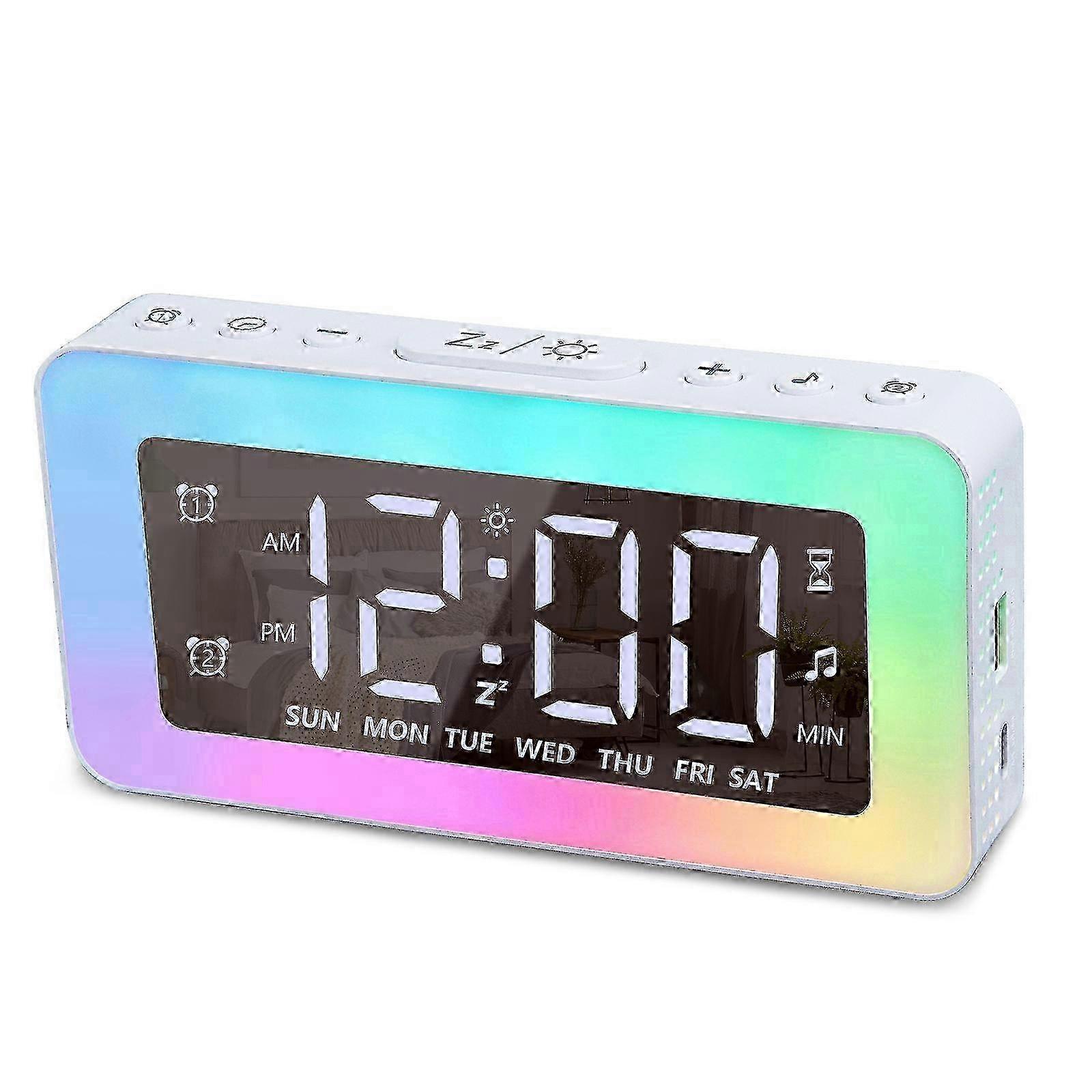 x Color Changing LED Light Mirror Alarm Clock Built-in 8 Natural Music LED Light Mirror (White)