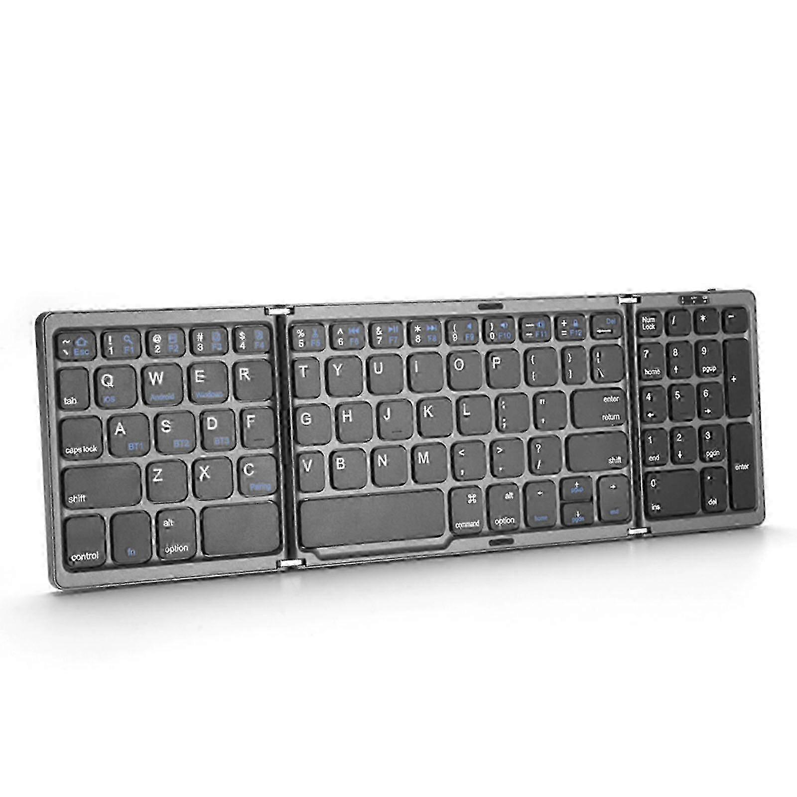B089 Bluetooth Foldable Keyboard with Numeric(Silver) 1. Bluetooth 5.1 2. ABS plastic 3. Unfolded size: 304.31 x 98.1 x 9.86mm 4. Folded size: 152 x 98.12 x 19.83mm 5. Built-in 140mah high-capacity rechargeable lithium battery, long standby 6. 3-channel Bluetooth connection, Up to 3 Bluetooth devices can be connected at the same time and you can switch between 3 devices at will Note: Due to the light and screen setting difference, the item's color may be slightly different from the pictures. Please allow slight dimension difference due to different manual measurement.
