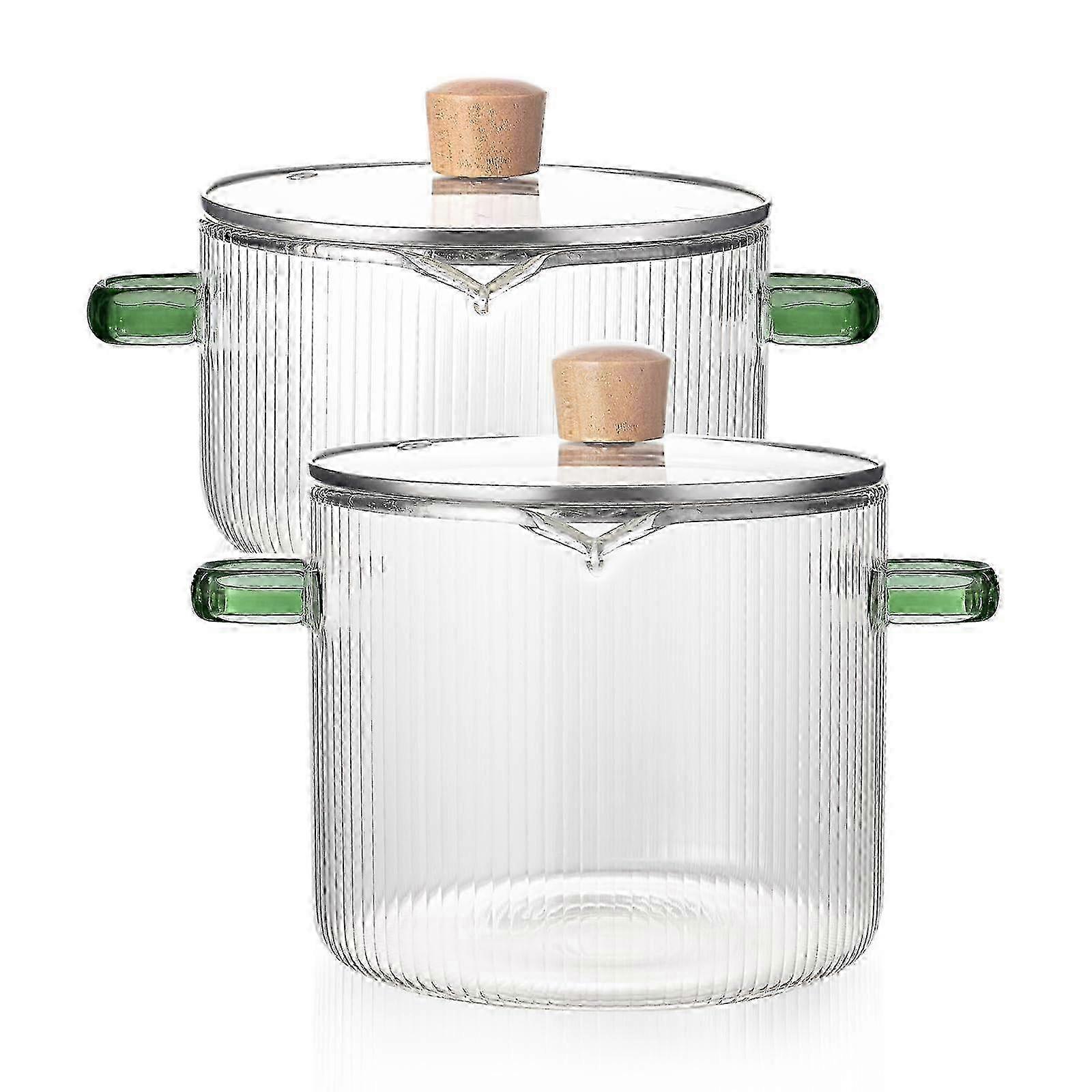 x 2 Piece Borosilicate Heat Resistant Simmer with Lid for Pasta 1.8L & 2.3L