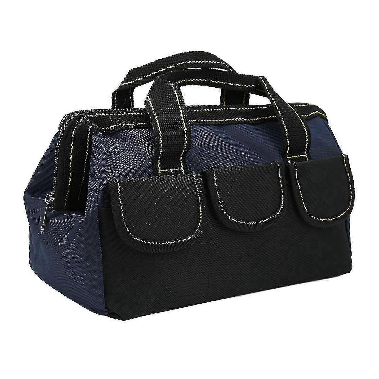 x 16in Tool Storage Bag Wide Mouth Heavy Duty Water Proof Portable Handheld Tool Tote Bag Black Blue