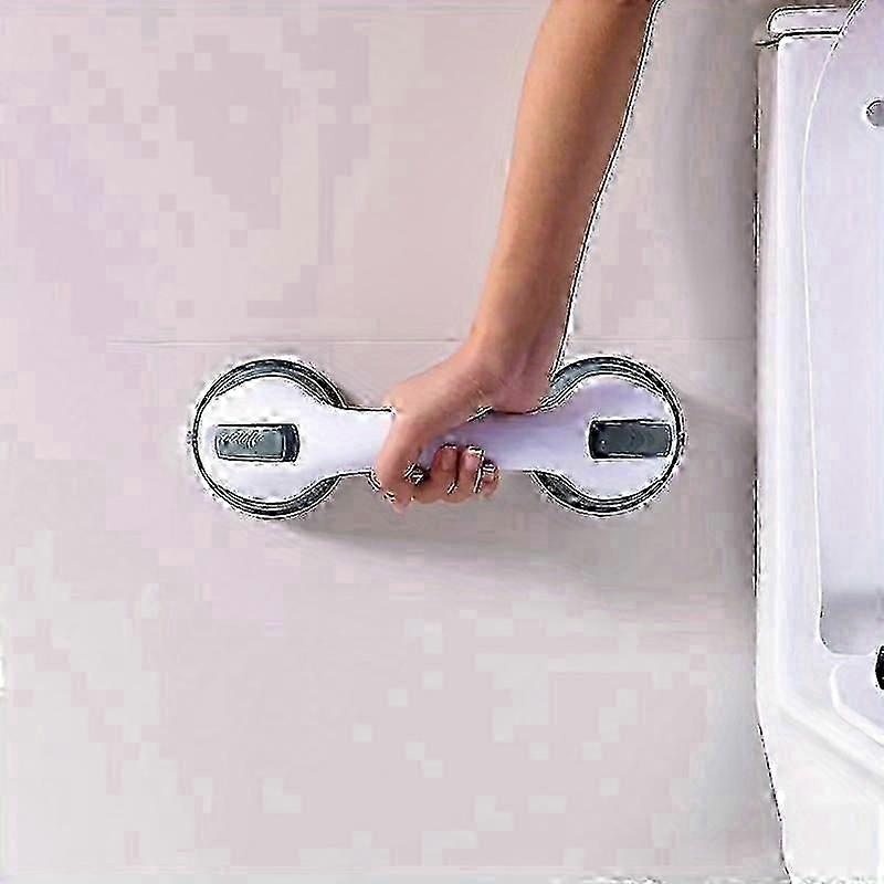 x Strong Suction Cup Bathroom Grab Bar, Non-Slip Handle for Glass Door Window, Drill-Free Safety Hand Grip, Plastic Bath Support Arm with Secure H