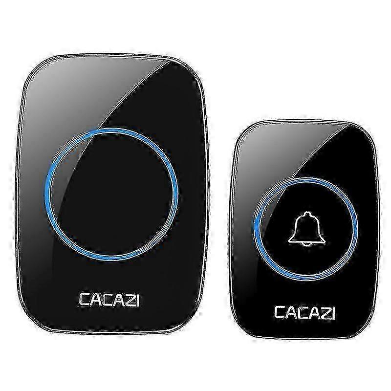x Wireless Doorbell Waterproof 100-240v 60 Rings 5 Volume Chime 300m Remote Led Light Home Eu Plug Black Door Bell - JA
