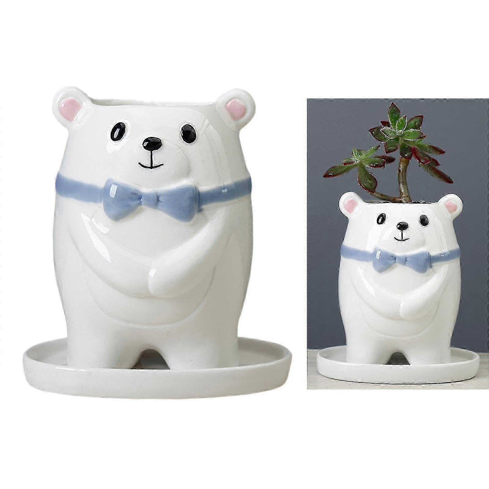 x Decorative Ceramic White Bear Planter Flower Succulent Pot Vase Girl