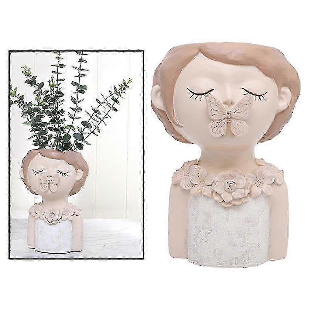 x Cartoon Girl Succulents Plant Pot, Cactus Planter Indoor Outdoor Resin Planter, Cute Plants Flower Pot - Style01