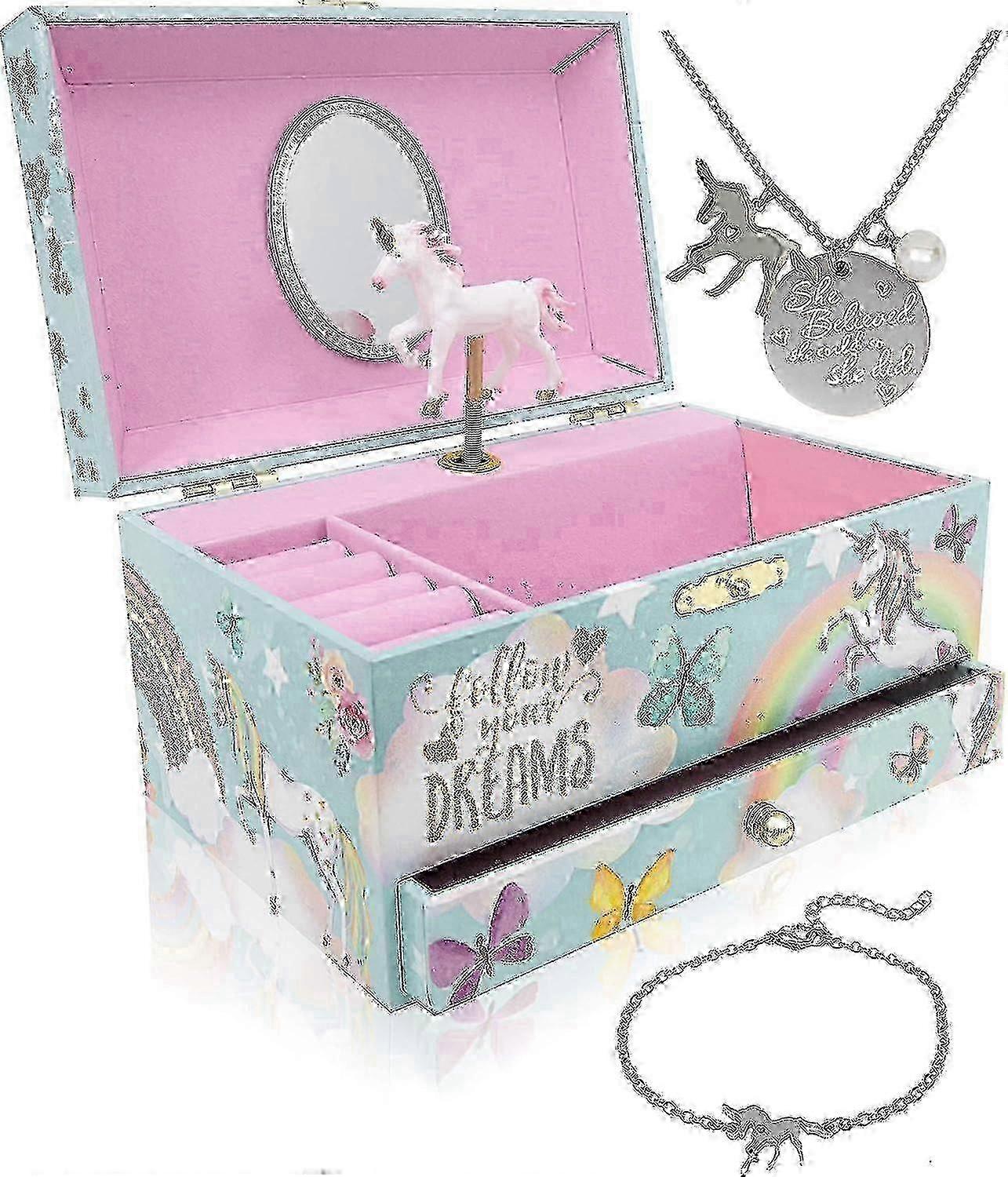x Unicorn Jewelry Box For Girls & Boys - Musical Girls Jewelry Organizer Box - Granddaughter Gifts For 8-year-old Girls