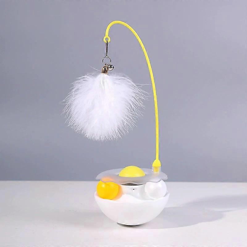 Interactive cat rolling toy ABS base with feather rolling ball anti tipping design for cat play toy