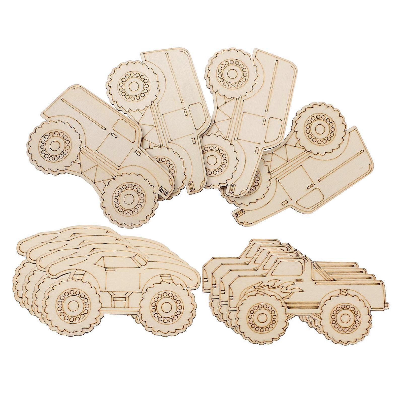 Hanging Ornament Wooden Slices Car Shape Party Supplies Beige 3.9×2.4×0.1in Painting 12Pcs