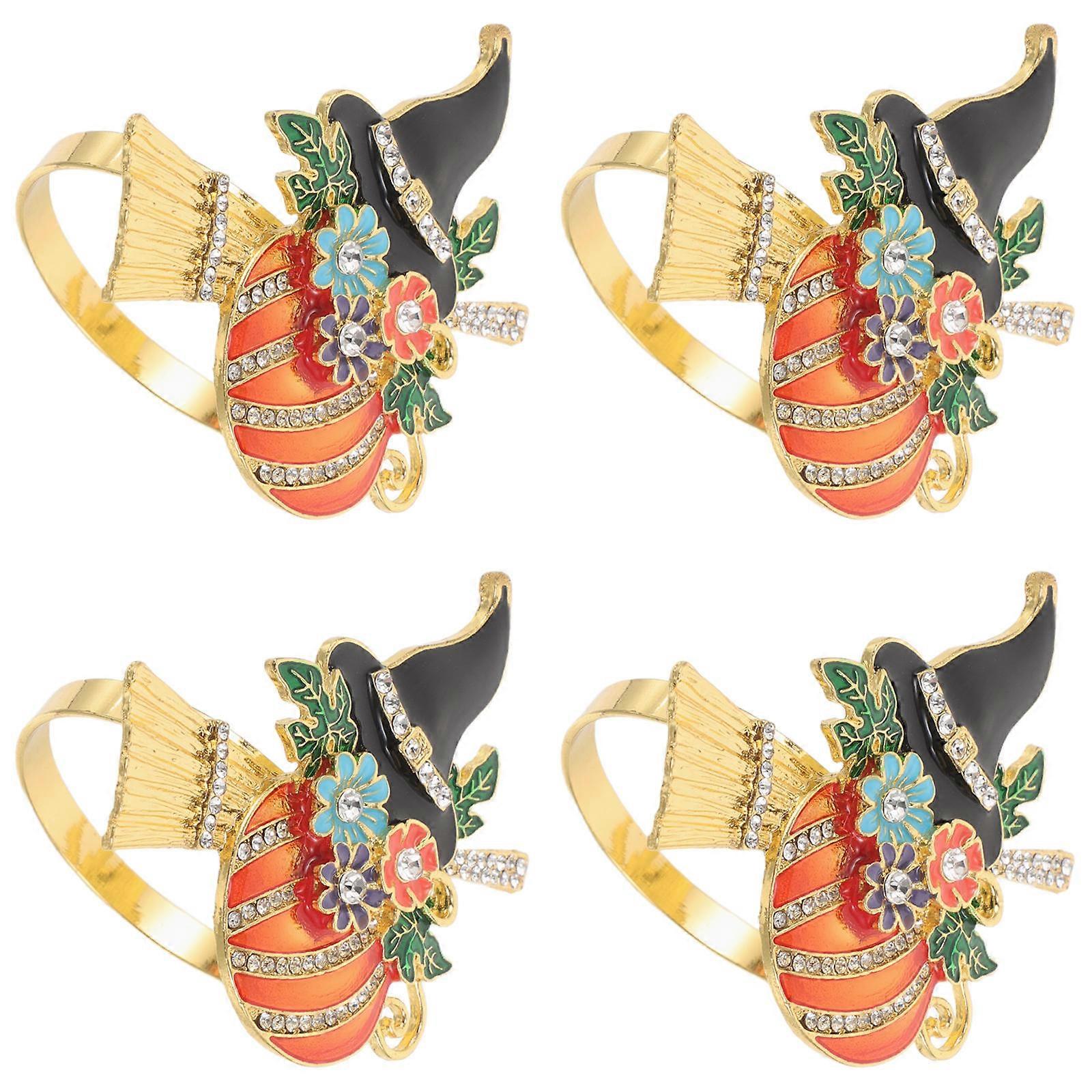 Pumpkin Napkin Rings Alloy Material with Rhinestone 4Pcs for Dining