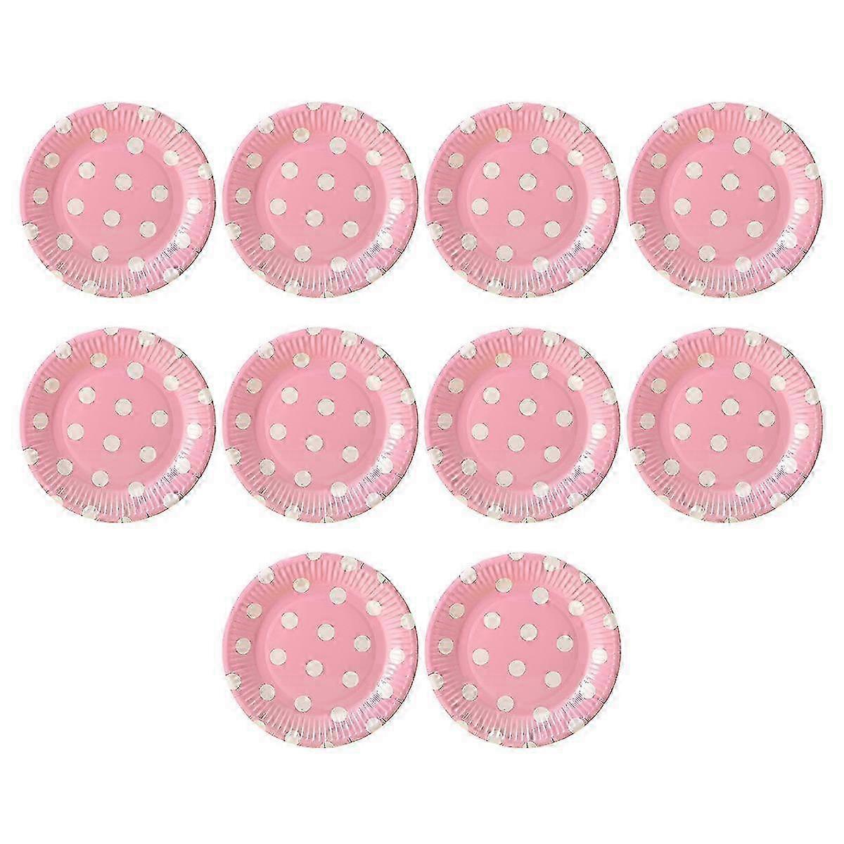 x 10Pcs Party Supplies 7 Inch Dot Paper Tray Cake Plate Disposable Barbecue Plate (Pink)