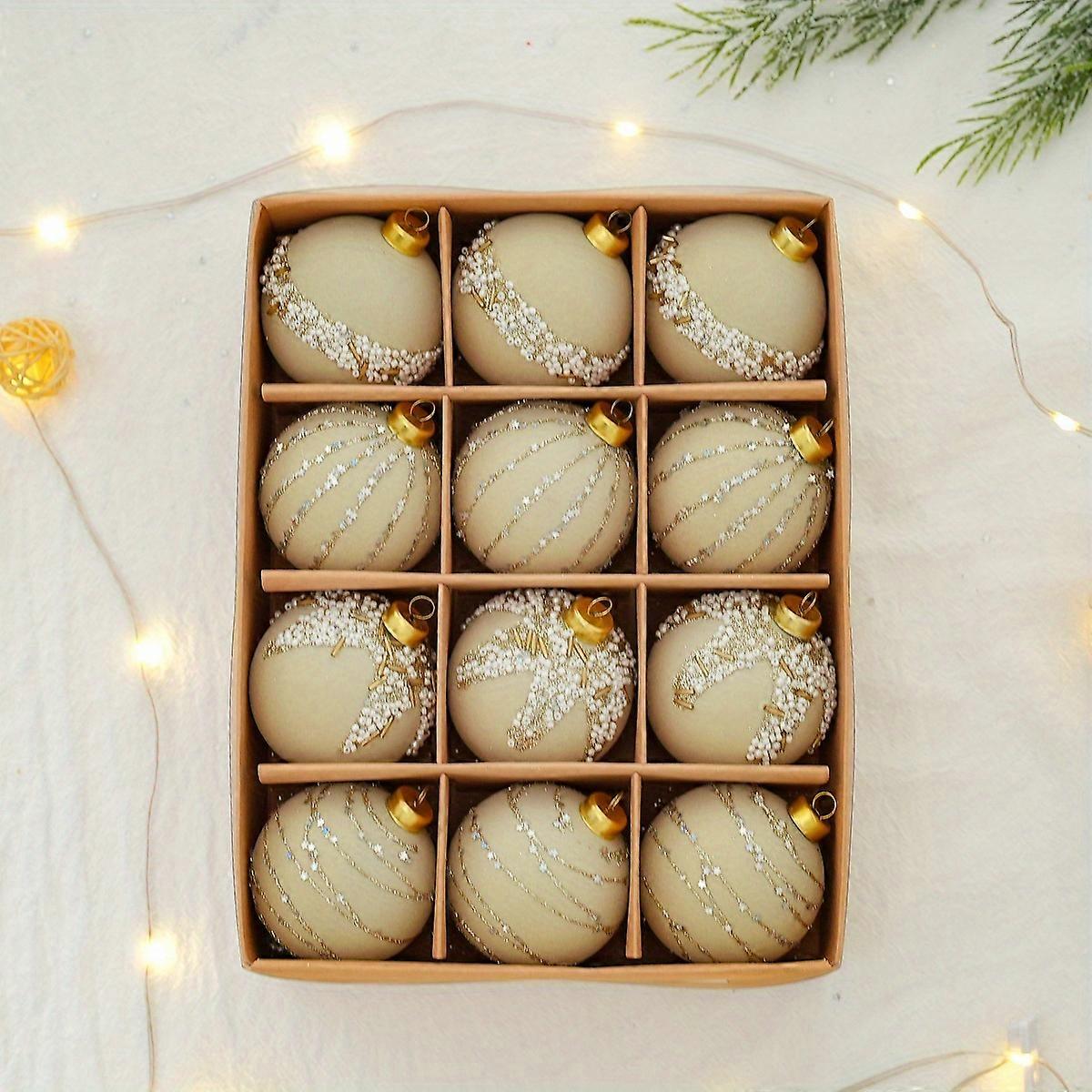 12 Christmas balls, Christmas tree decoration balls, Christmas painted balls, plush dark red pearl DIY pendants