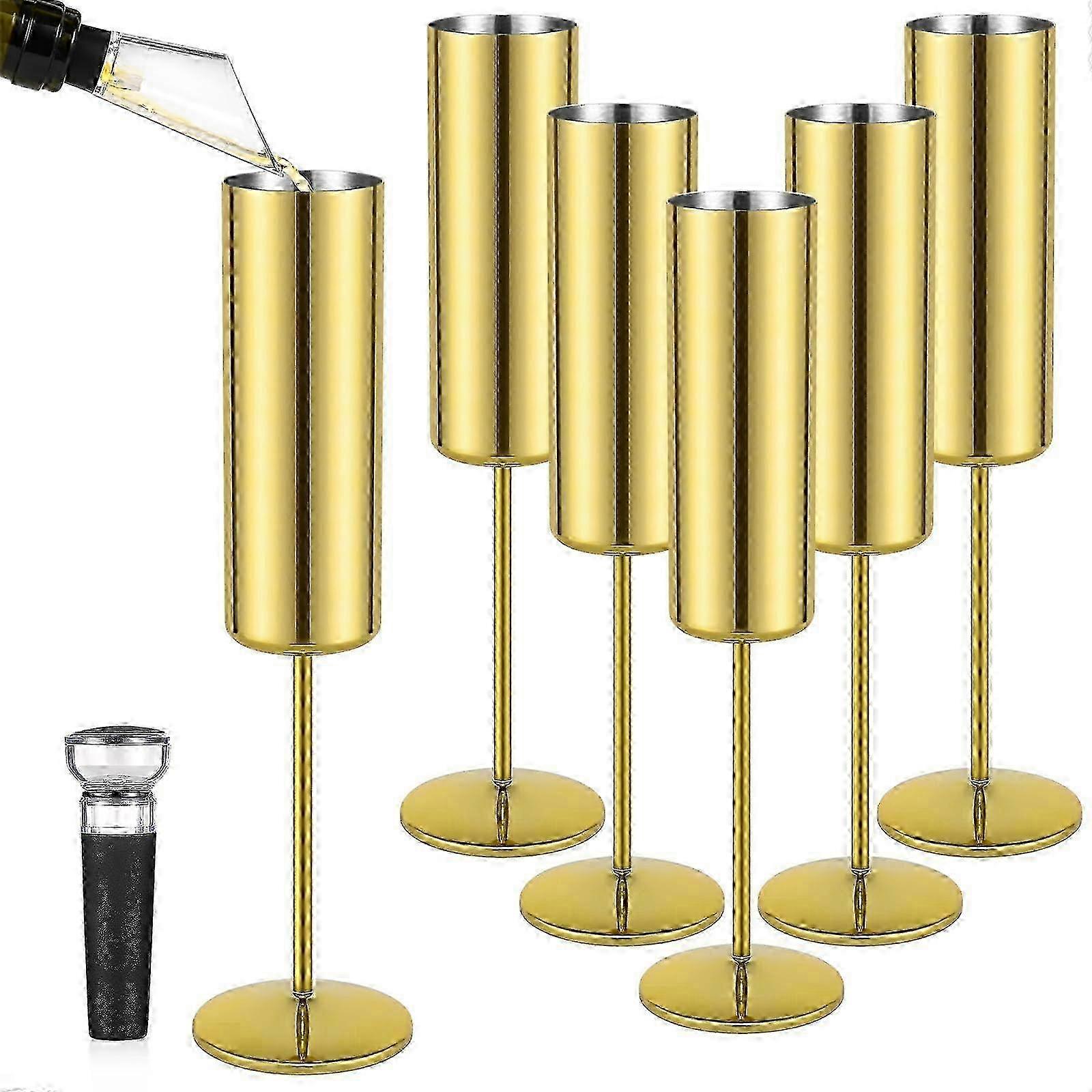 x Champagne Flutes Set of 6 Insulated Unbreakable Reusable Stainless Steel 6oz Gold Stemmed Glasses