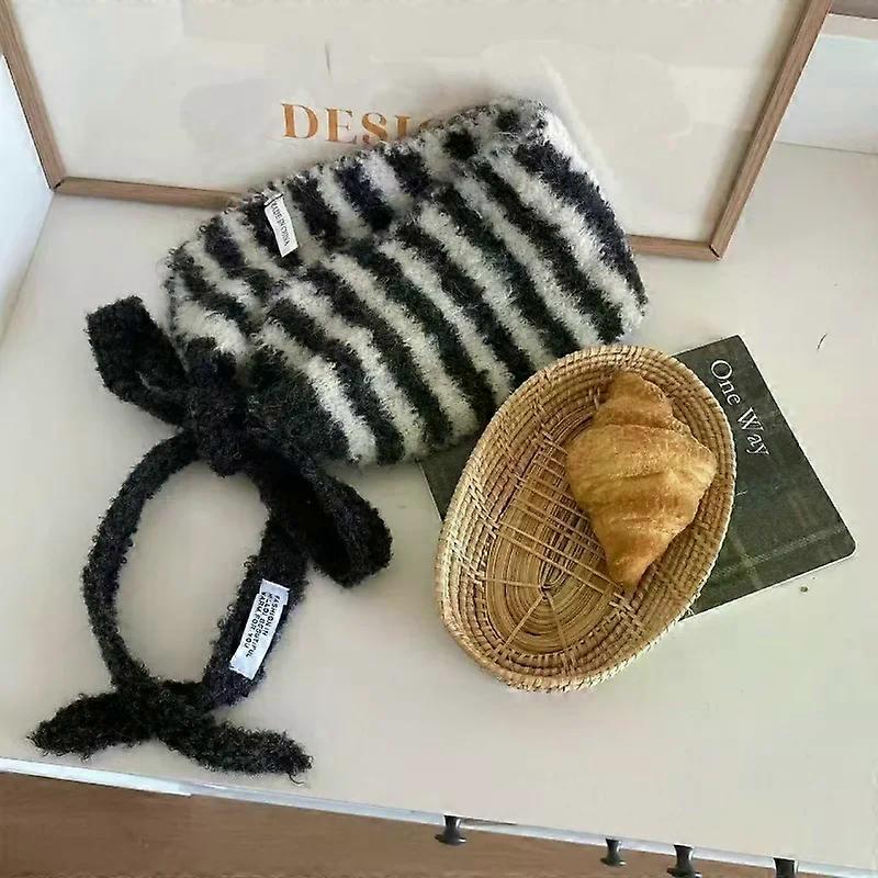 Stripes Knitted Straps Earmuffs for Women Autumn and Winter Travel Versatile Warm Casual Hairdband Ins Personality Contrasting