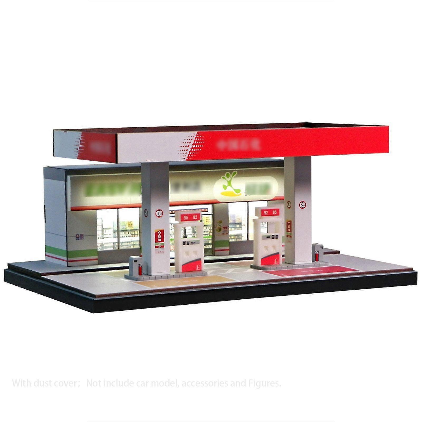 Diorama 1/64 Car Garage Model LED Lighting Gas Stations Parking Lot Scene Model