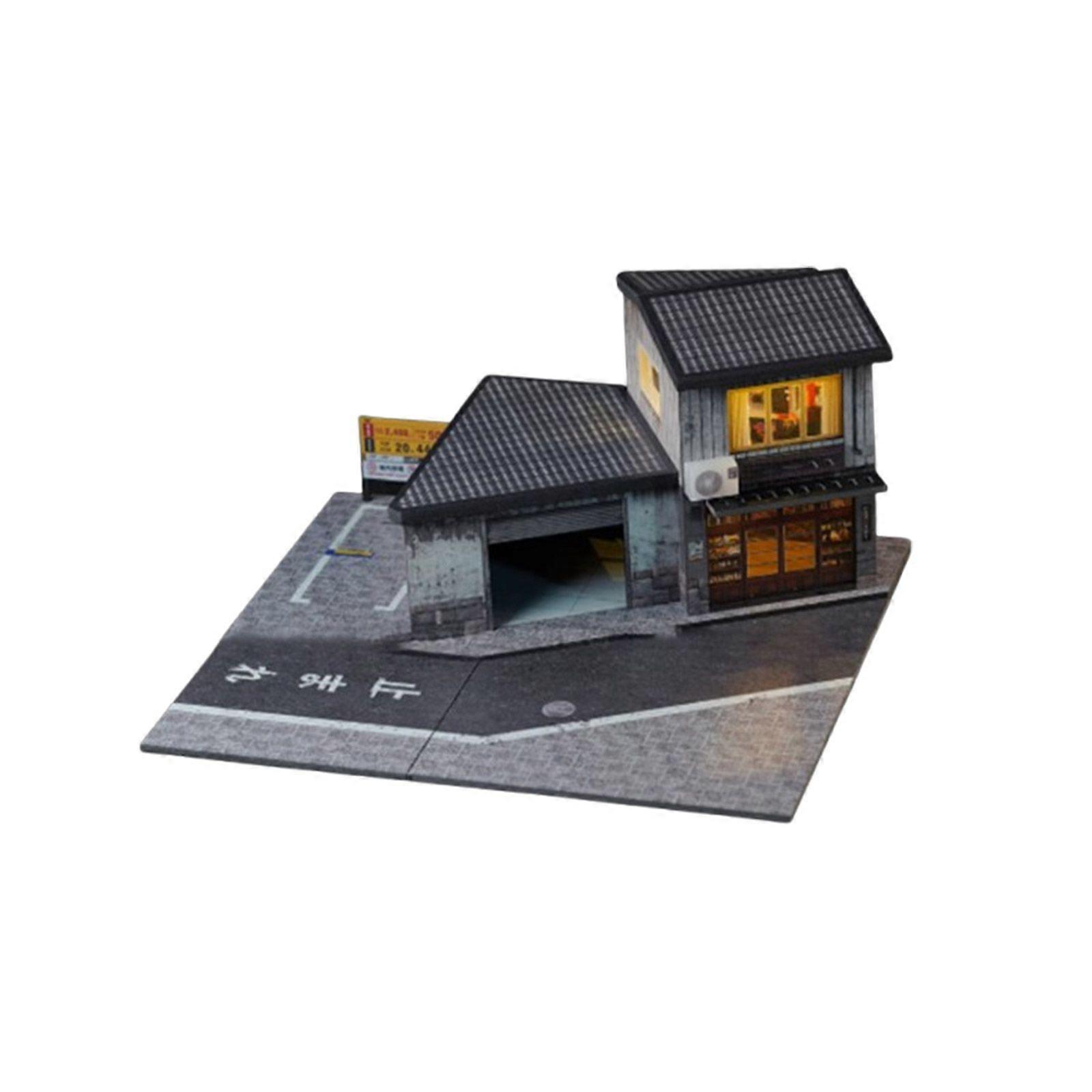 1/64 Diorama Car Garage Model LED Lighting City Building Parking Lot Scene Model