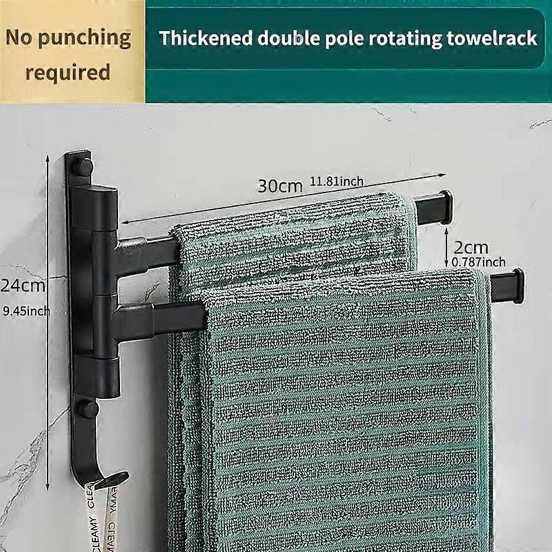 Bathroom Rotating Towel Bar Wall Mounted Non Perforated Iron Towel Storage Rack For Household Bathroom Storage Products