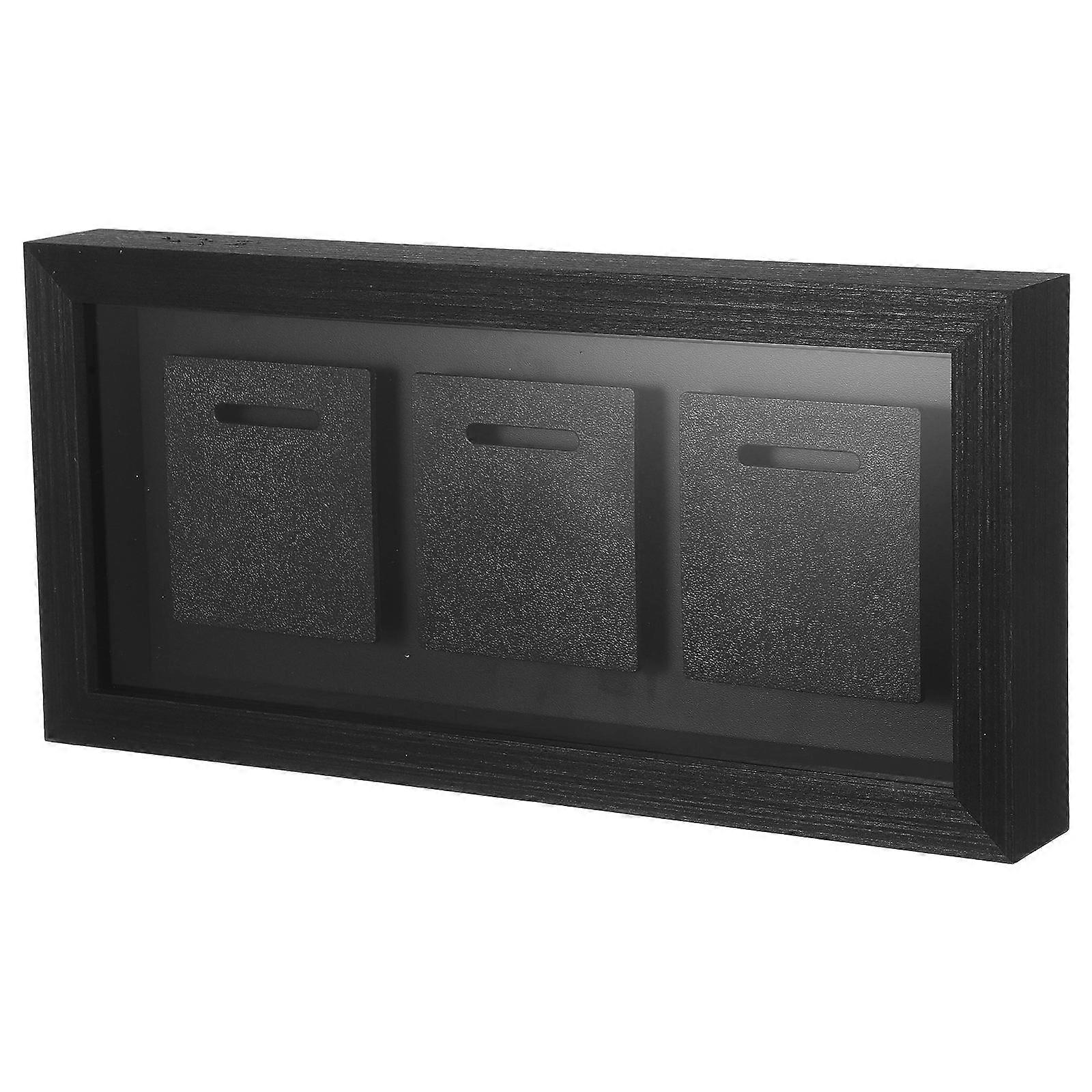 Medal Display Case Wooden Holder for 3 Marathon Medals with Black Finish
