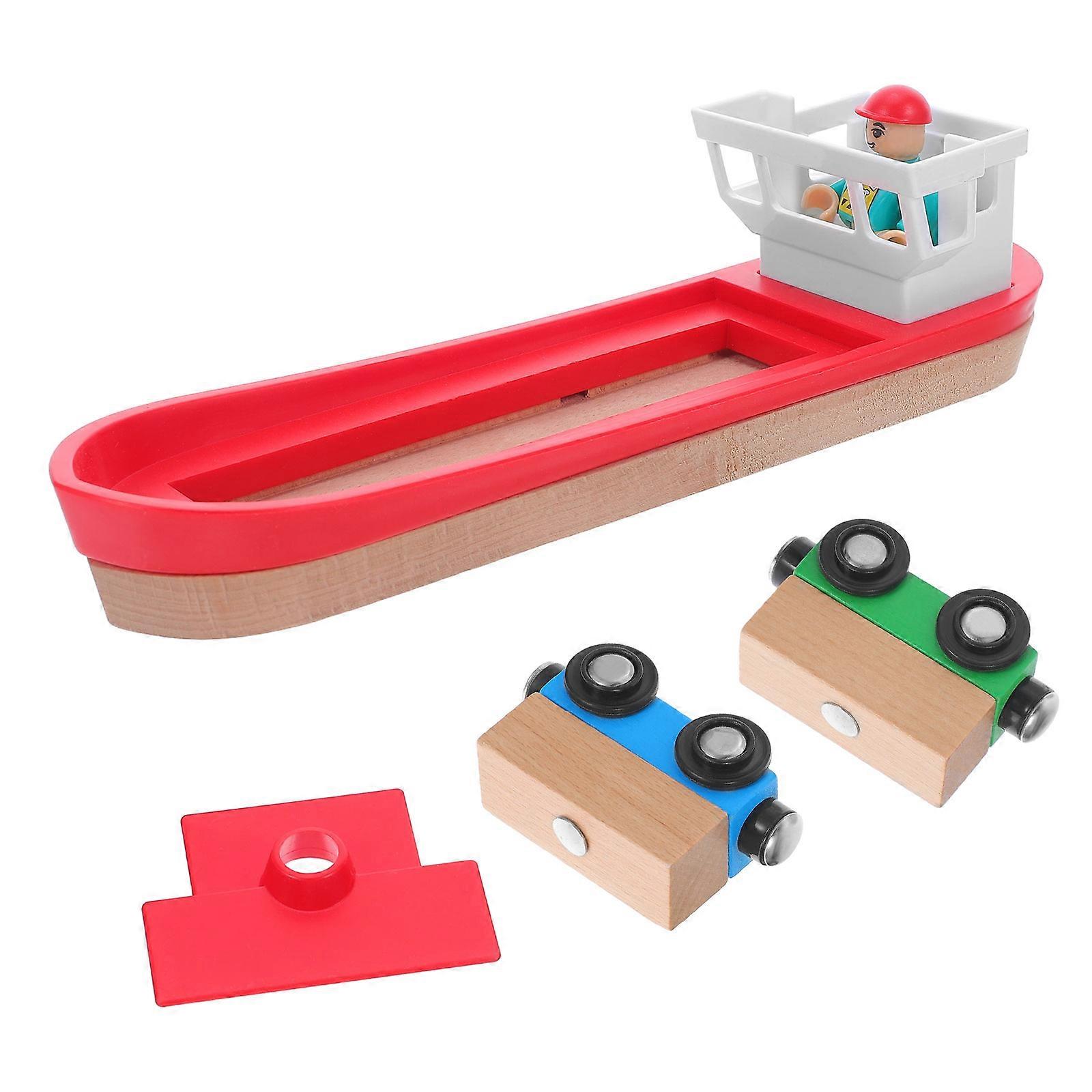 Fire Train Track Wooden Ship Set for Creative Play 1Set Red Plastic and Wood Accessory