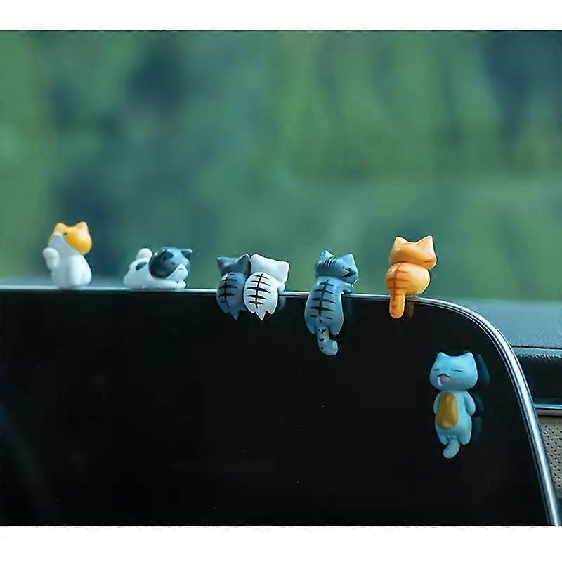 6pcs PVC Cartoon Cat Figurines for Car Dashboard, Plant Pots, and Screen Edge Decor