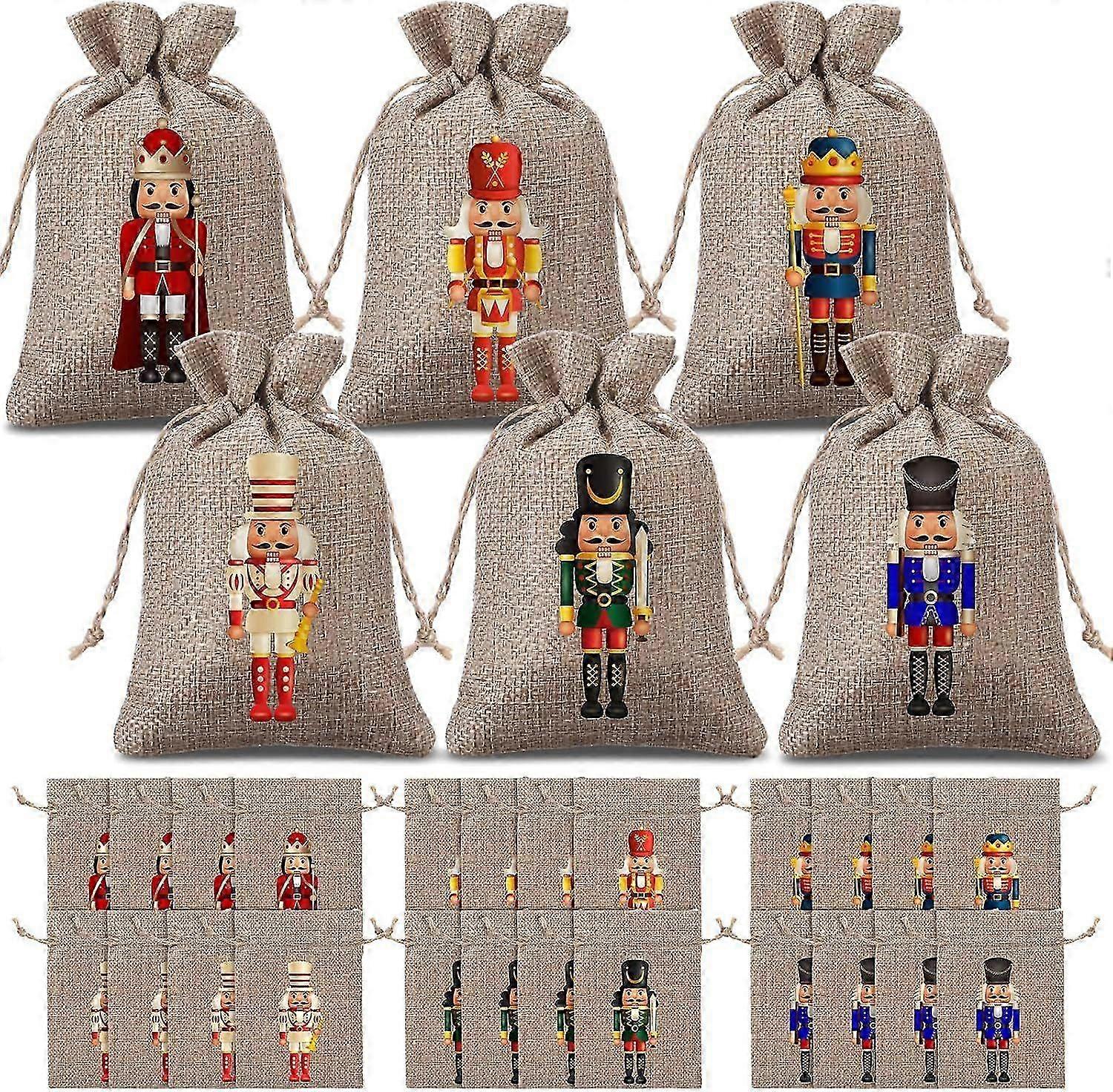 24 Pcs Christmas Nutcracker Burlap Gift Bags with Drawstrings, Reusable Holiday Treat Bags for Candy Jewelry Gifts