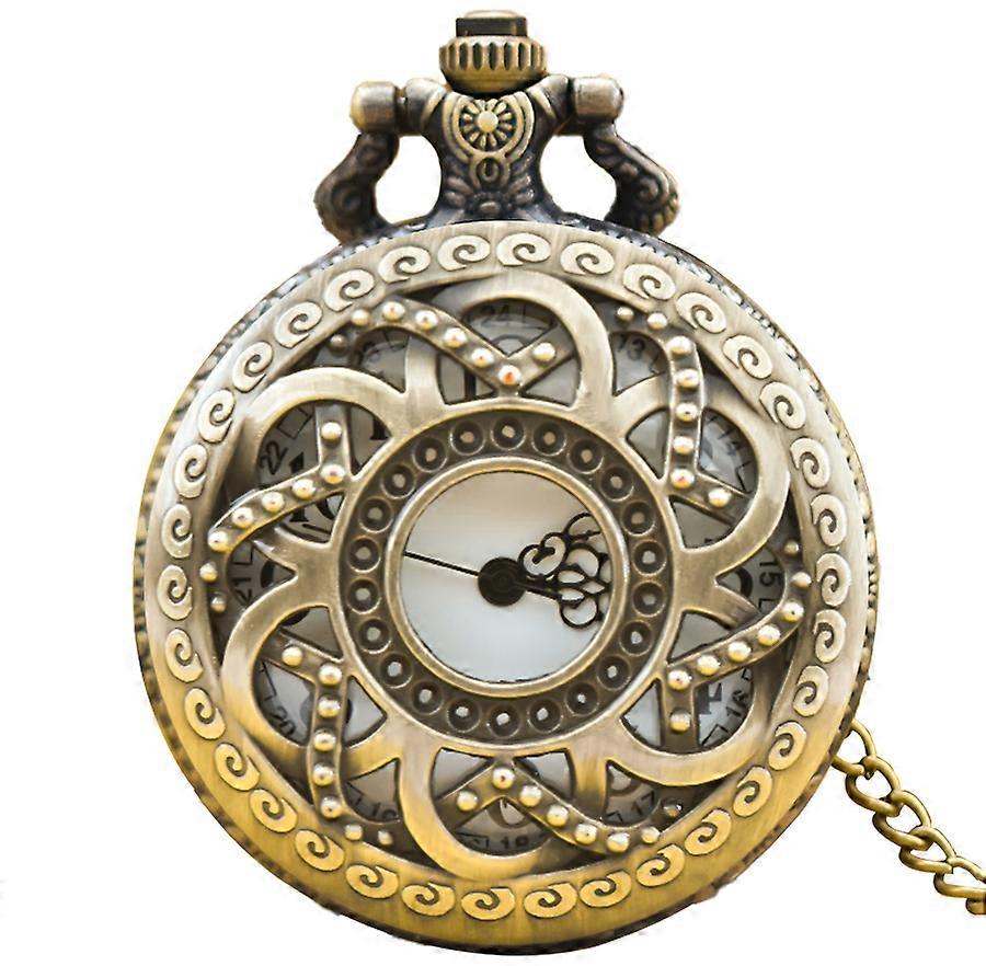 Retro Bronze Steampunk Openwork Flower Flip Quartz Boys' And Girls' Necklace Commemorative Pocket Watch