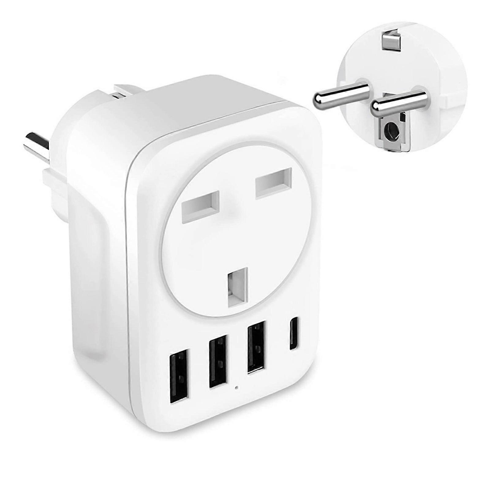 MultiDevice Charging Travel Adapter 240 v/110V Converters UK to German Socket Adapter 4USB Port Insulated For Journey Multicolor