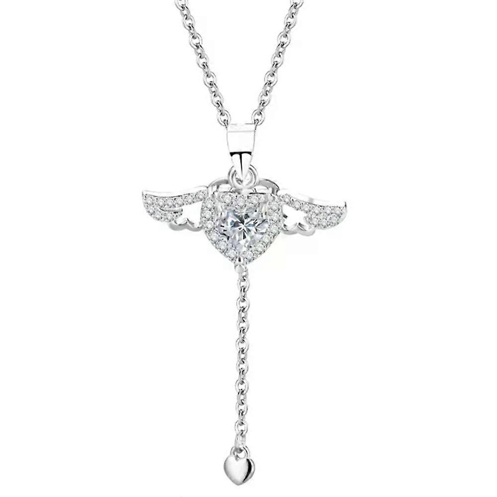 925 Sterling Silver Heart Angel Wings Pendant Choker Necklaces For Women Aesthetic Jewelry Accessories Money Jewellery