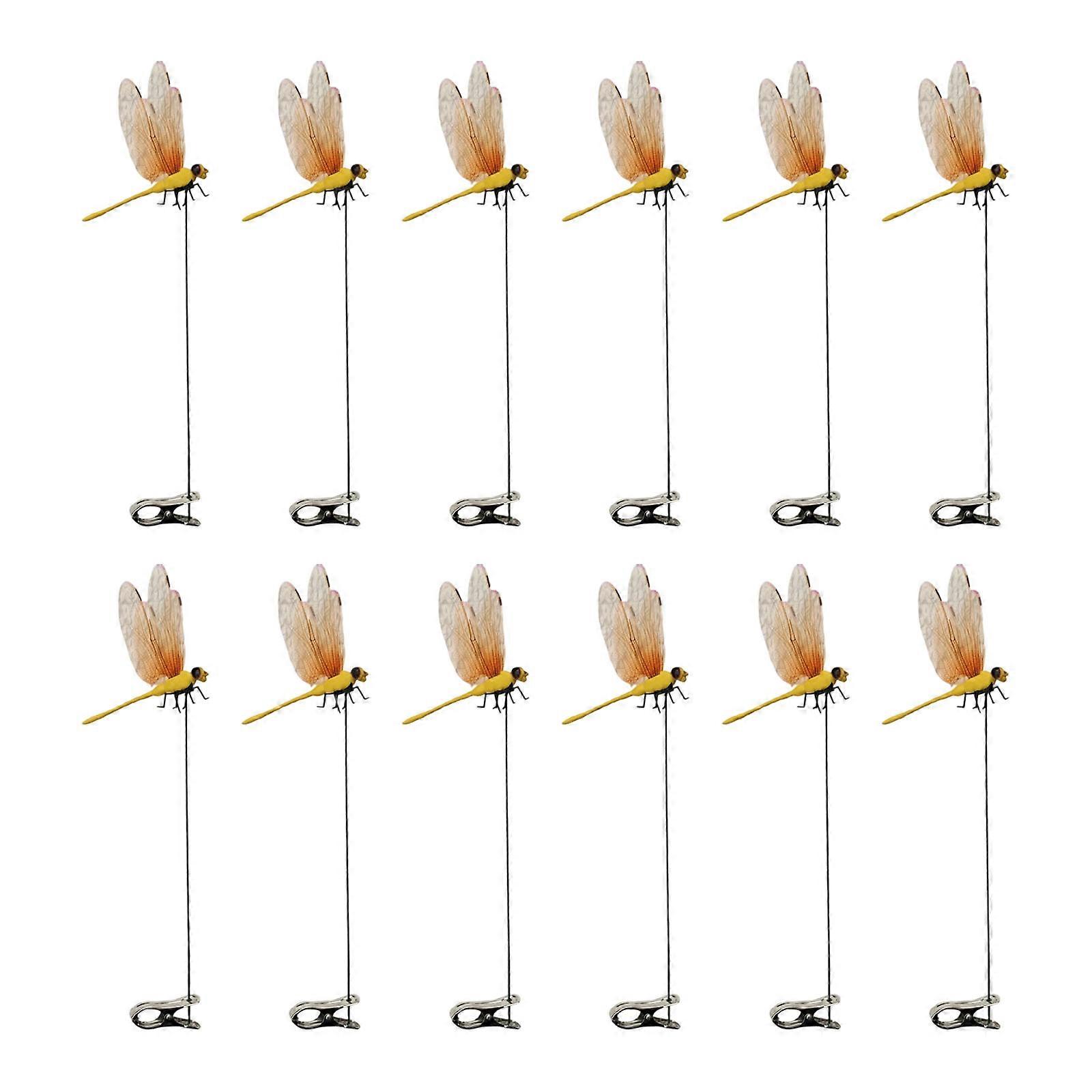 Premium 3D Dragonflies Garden Accessories Sun Resistant Decorative Clip For Yard Landscape Enhancement Yellow