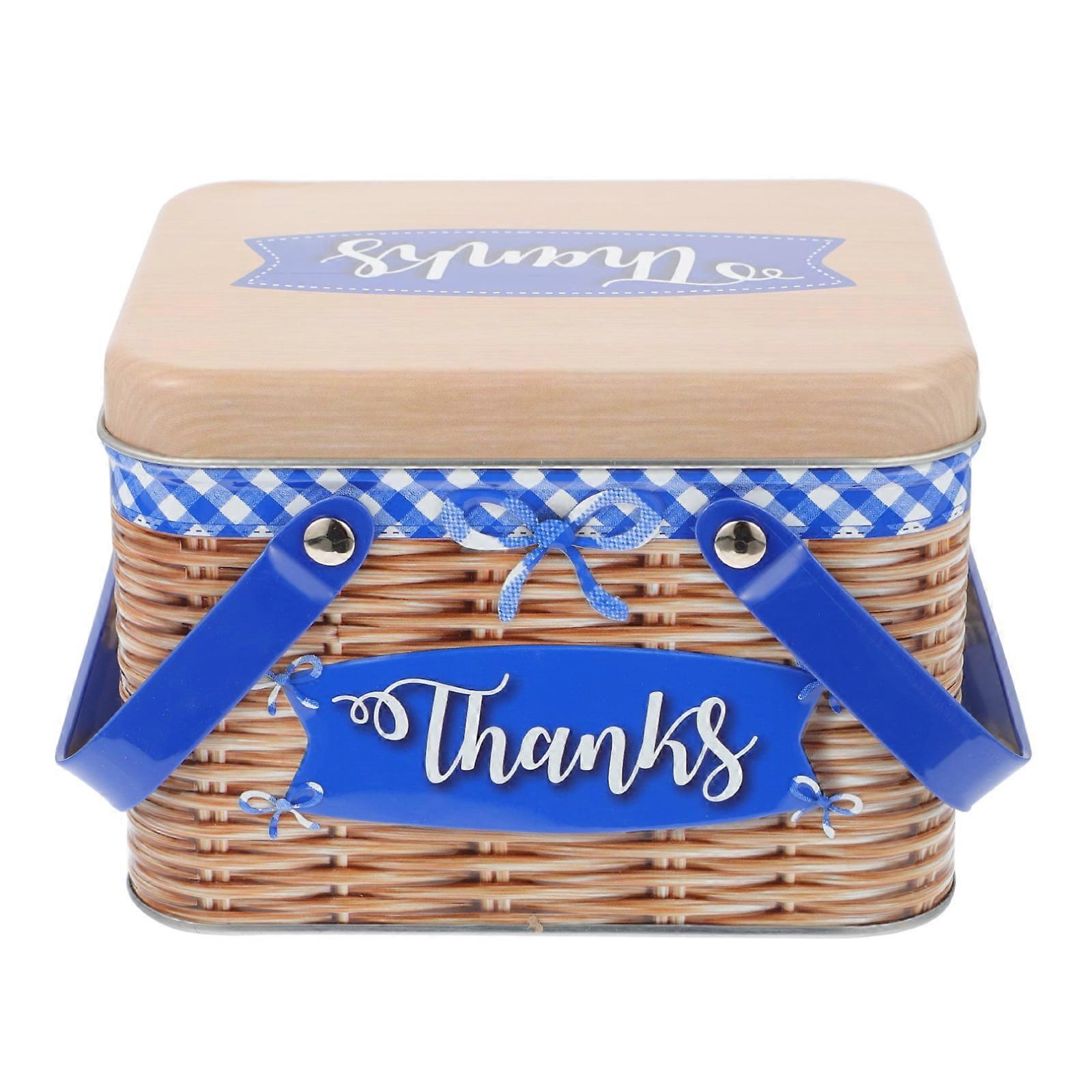 Tinplate Candy Cookie Box With Handle Creative Cookie Jar Biscuit Container Gifts Tinplate Box For Dry Storage Tea Candy ( Blue )
