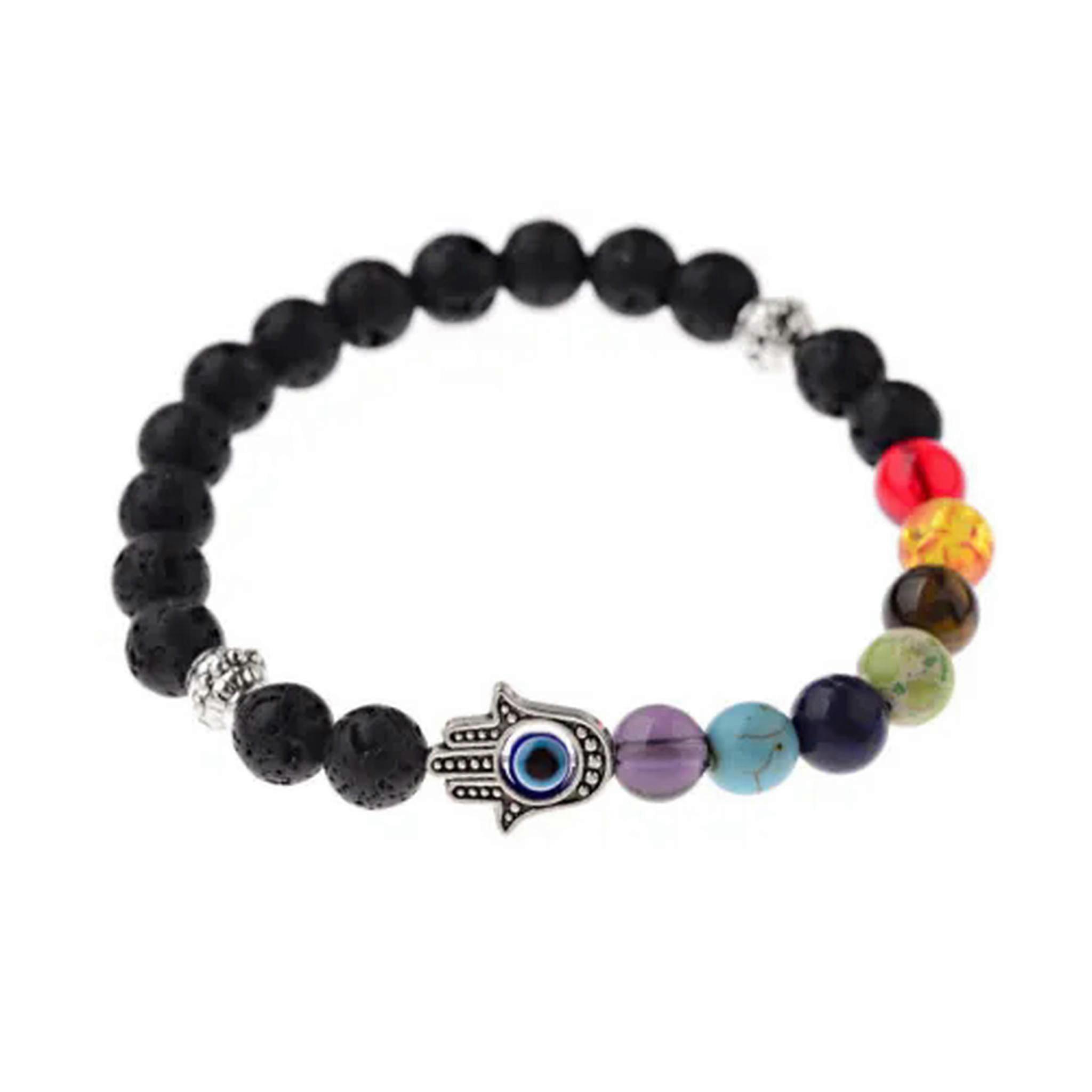 RSAMD Reiki Healing Stone Bracelet 7 Chakra Balance Energy Lava Rock Stones Beads-1