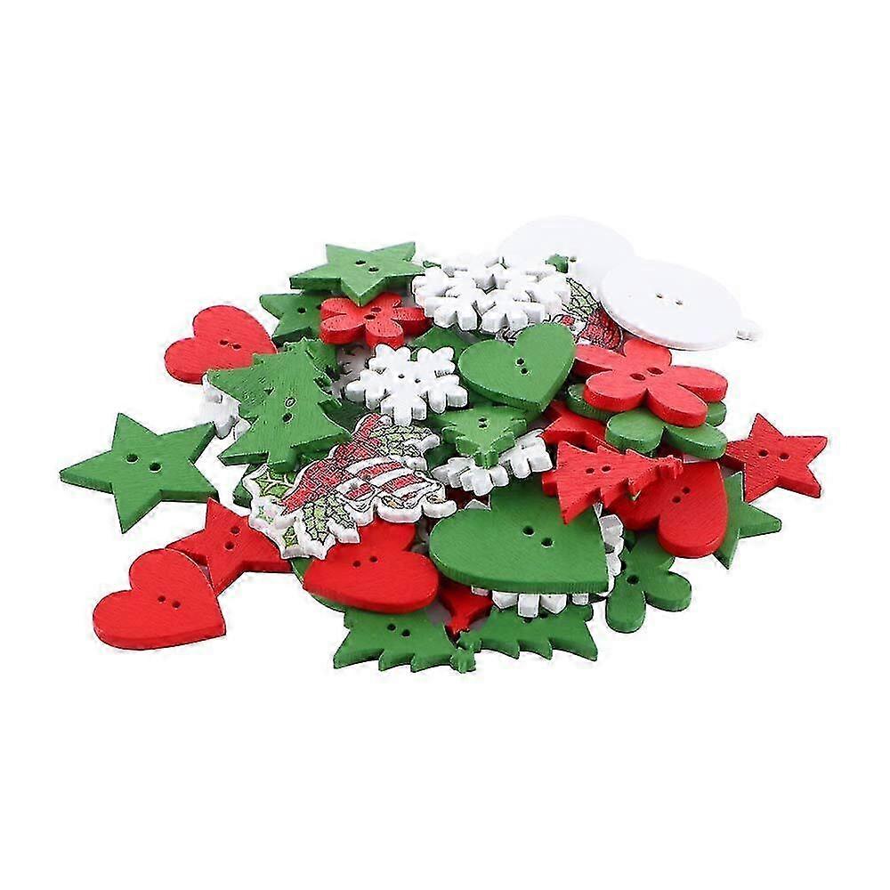 50Pcs Mixed 2 Hole Wooden Christmas Decor Buttons for Sewing Clothing