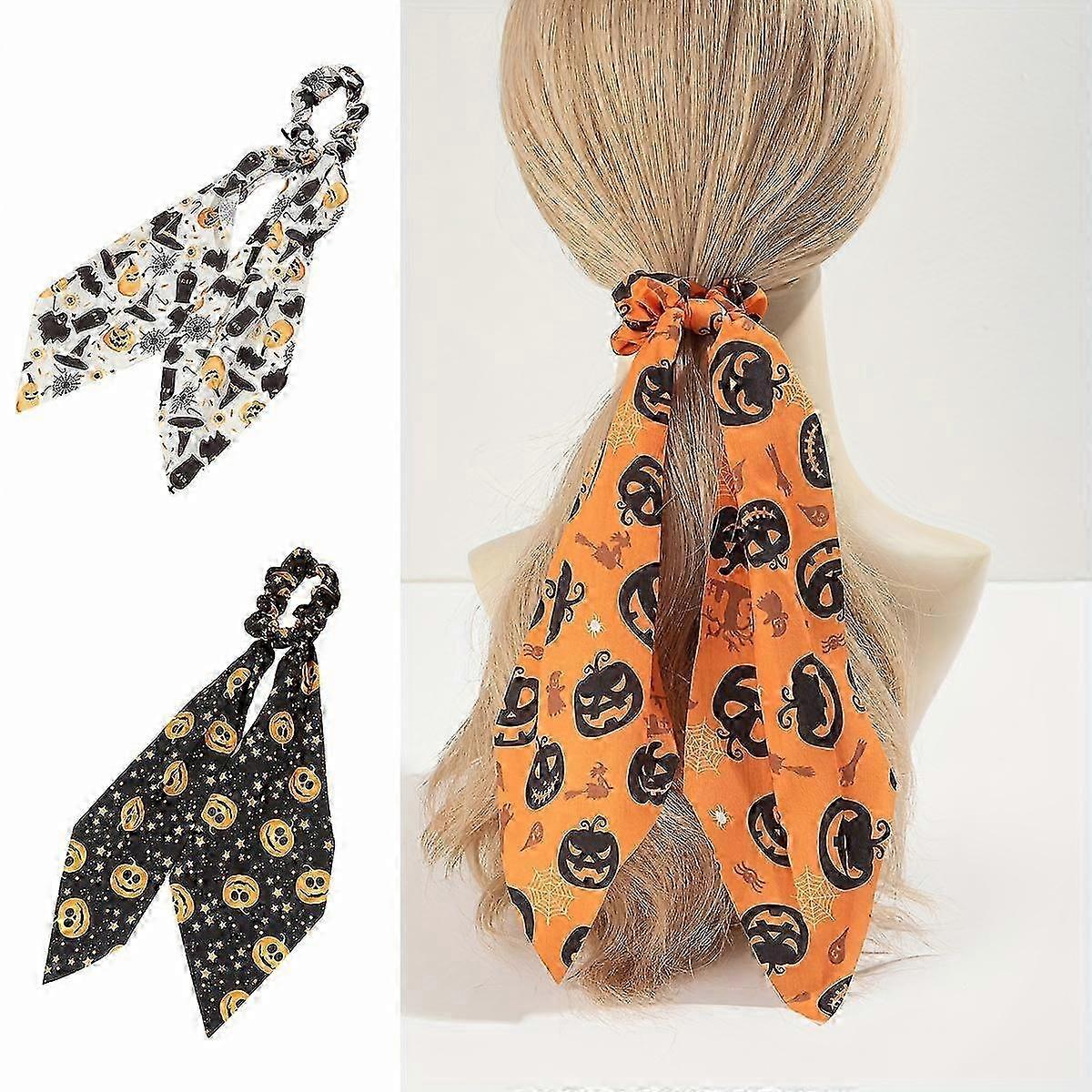 Women's Halloween Pumpkin Print Rubber Bands 3pcs for Leisure Use