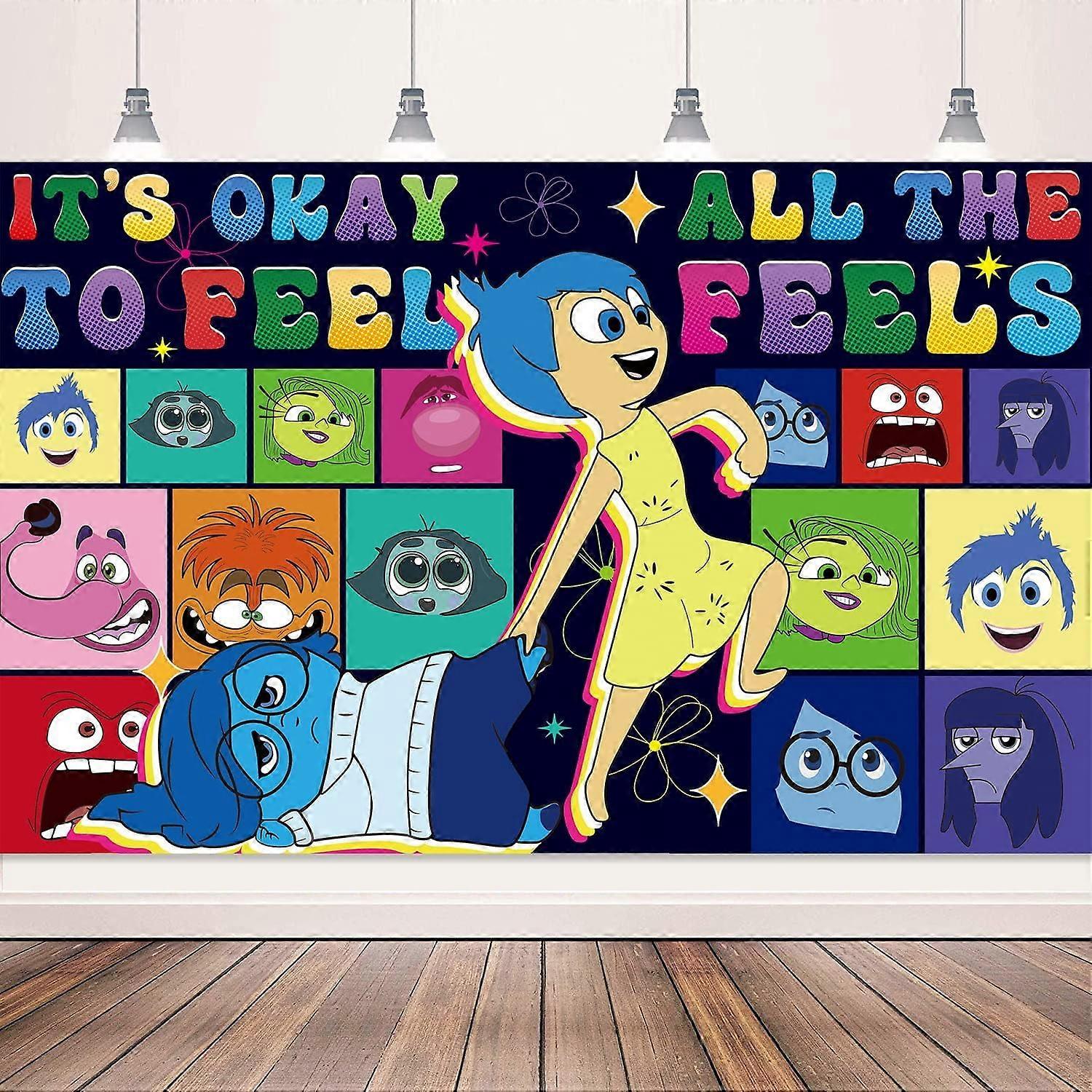 Colorful Cute "It’s Okay to Feel All The Feels" Birthday Party Backdrop Banner, Compatible with Photography Background Decorations