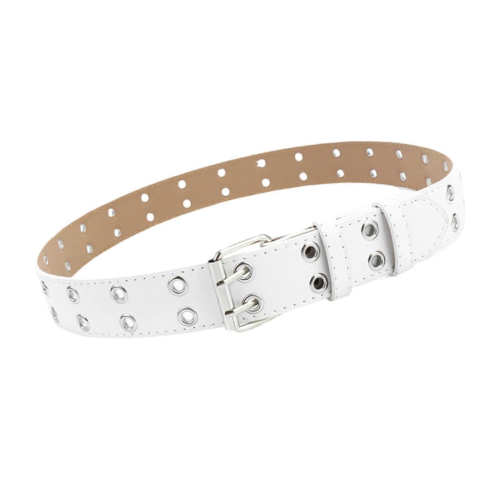 Children's Punk PU Belt for Girls and Boys with Double Eyelets Grommet Design for Jeans and Pants White