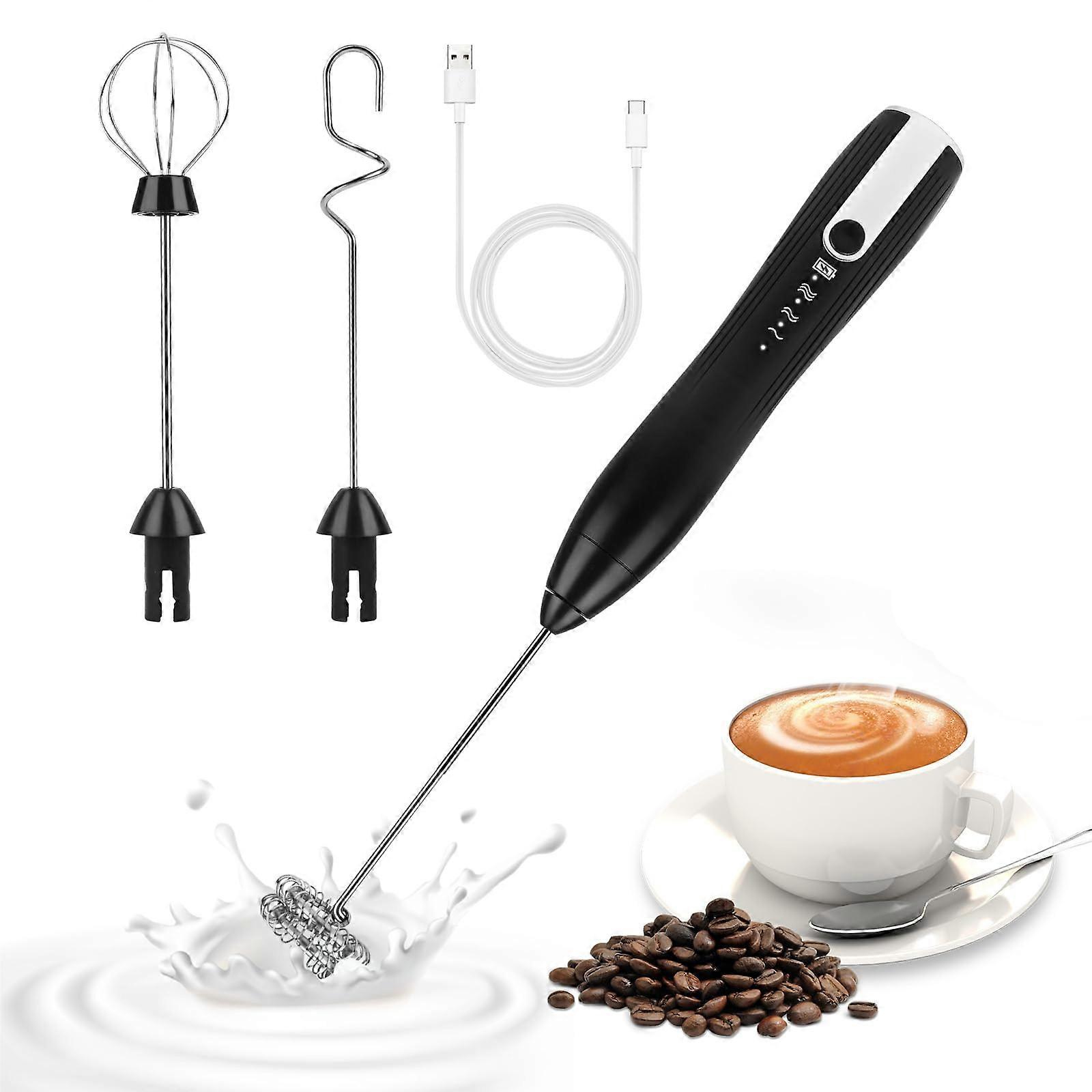 Electric milk frother, USB rechargeable milk frother, with 3 mixing heads, mini whisk, 3 speed settings, mini electric whisk.